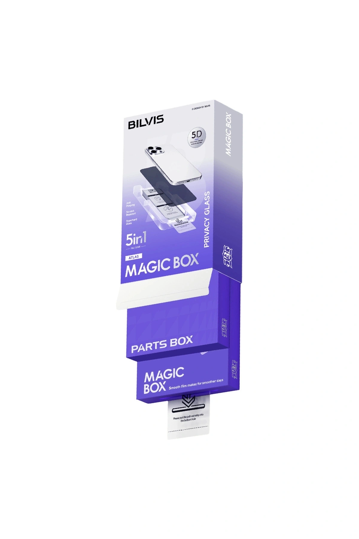 Bilvis 5in1 5D Magic Hayalet Cam Ekran Koruyucu✅Gizlilik Koruması: Kişisel, özel ve hassas bilgilerinizi farklı açılardan meraklı gözlere karşı okunamaz hale getirir.; Mükemmel gizlilik koruma sağlar.; ✅Süper Sert Cam: Güçlendirilmiş cam yapısı ile darbelere, düşmelere ve çizilmelere karşı maksimum koruma sağlar.; ✅Parmak İzi Önleyici Kaplama: Özel elektro kaplama teknolojisi sayesindeparmak izi, yağ ve leke oluşumunu engeller.; ✅5D Tam Kaplama Teknolojisi: Tüm ekranı kenardan kenara sararak toz ve kirin kenarlardan girmesini önler.; ✅Patlamaya Dayanıklı Yapı: Yüksek sertlik seviyesi ile ani darbelere ve kırılmalara karşıgüvenli koruma sağlar.; ✅Kolay Uygulama: Hava kabarcığı bırakmadan saniyeler içinde yapışır.; ✅360°Esnek Yapı: Katlanabilir tasarımı sayesinde dayanıklı ve uzun ömürlü kullanımsağlar.; ✅Yansıma Önleyici Yüzey: Güneş ışığında bile net görüntü sağlar, ekran parlaklığınıazaltmadan yansımayı engeller.; ✅Kutu İçeriği: Her kutuda 5 5D tam kaplama ekran koruyucu ve uygulama kitibulunur.