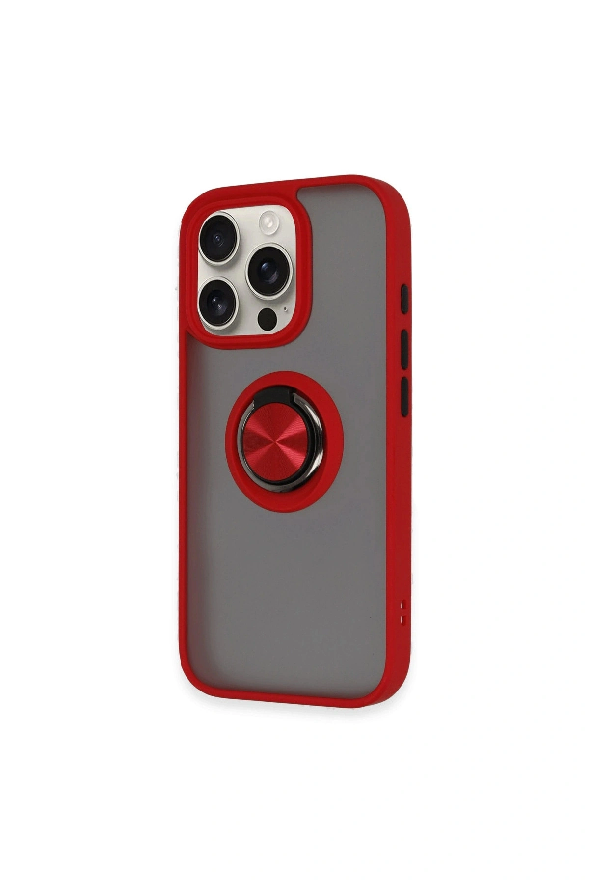 İphone 16 Pro Max Kılıf Montreal Yüzüklü Silikon Kapak - Kırmızı