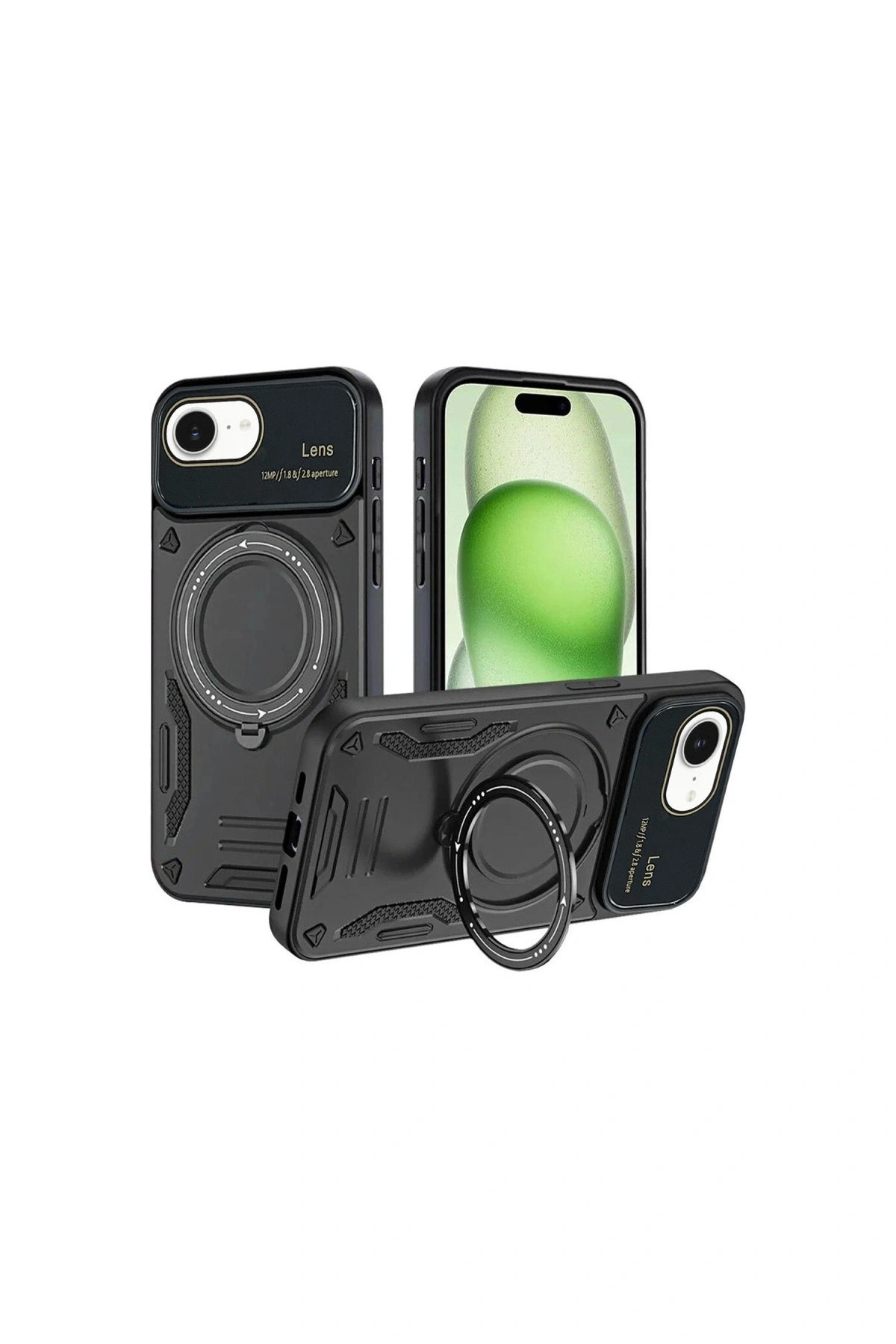 İphone 16e Kılıf Joy Lens Standlı Kapak - Siyah
