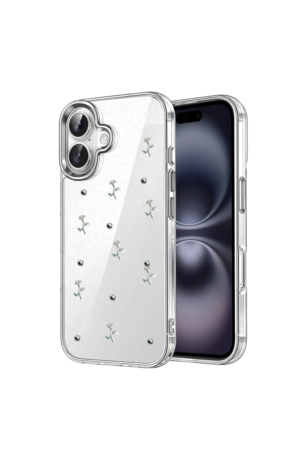 Fiyonk Desenli Kapak ✅ Zarafet ve Koruma Bir AradaFiyonk, yıldız, kelebek, lale, çiçek, kalp ve gül gibi zarif detaylarla süslenmiş bu kapak simli, şeffaf tasarımıyla estetik ve korumayı bir araya getiriyor.; Telefonunuzu yalnızca dış etkenlerden korumakla kalmaz, aynı zamanda ona göz alıcı bir stil kazandırır.; Günlük kullanımda dikkat çeken tasarımı sayesinde cihazınızın şıklığı öne çıkar.; ✅ Üstün Darbe KorumasıEsnek kenar yapısı ve dayanıklı malzemesiyle telefonunuzu darbelerden ve düşmelerden etkili bir şekilde korur.; Simli şeffaf yüzey, hem sağlamlık hem de görselliği bir arada sunarak cihazınızın görünümünü sergilemeye devam eder.; ✅ Konforlu ve Pratik Kullanımİnce ve hafif tasarımıyla telefonunuzu kalınlaştırmadan yüksek koruma sağlar.; Tüm tuşlar, bağlantı noktaları ve kamera çıkıntılarıyla tam uyumludur.; Kaymaz yüzeyi sayesinde elde daha güvenli bir tutuş sunar böylece günlük kullanımda rahatlık ve konfor sağlar.