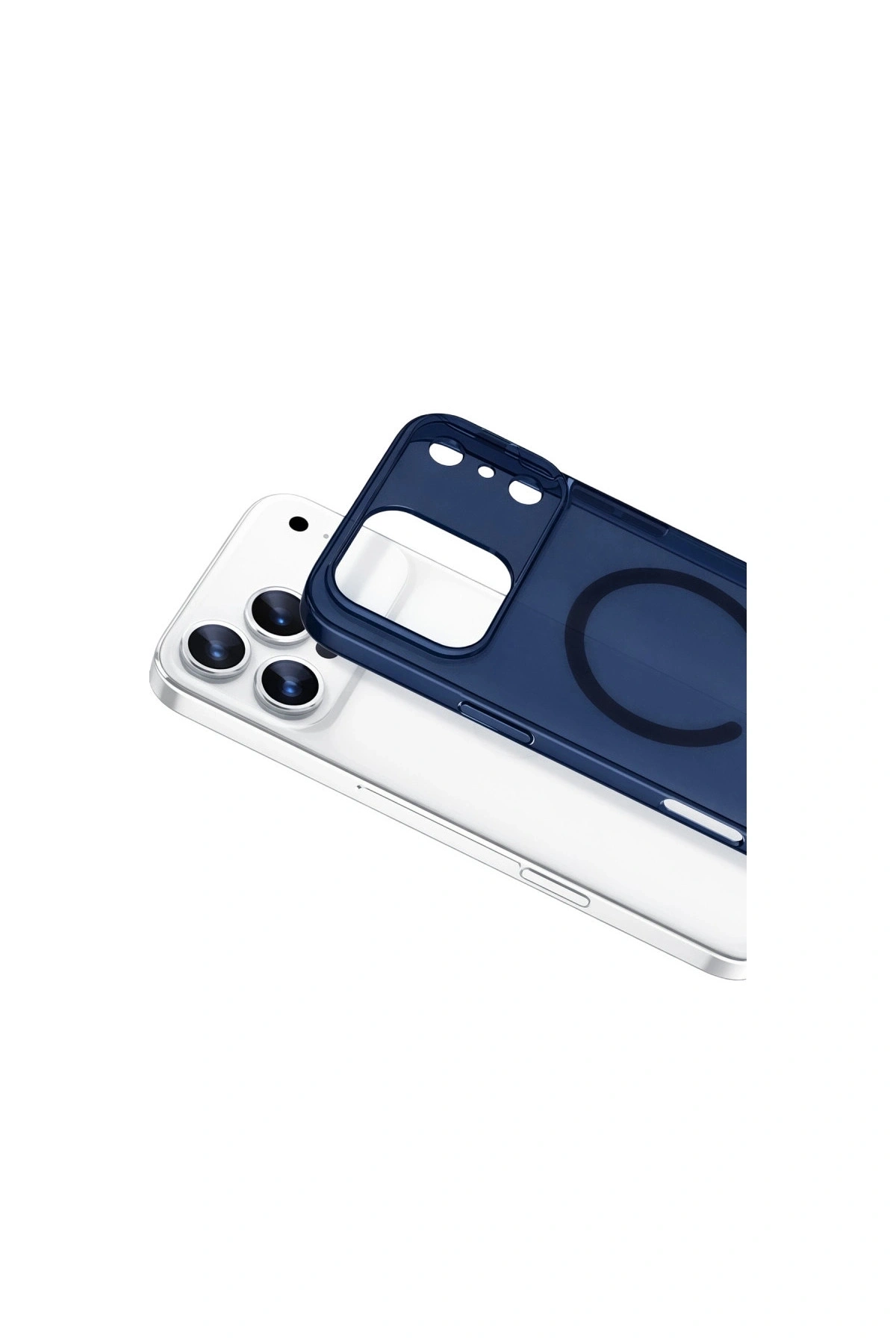 İphone 17 Pro Combo Sert Şeffaf Magsafe Kapak - Mavi