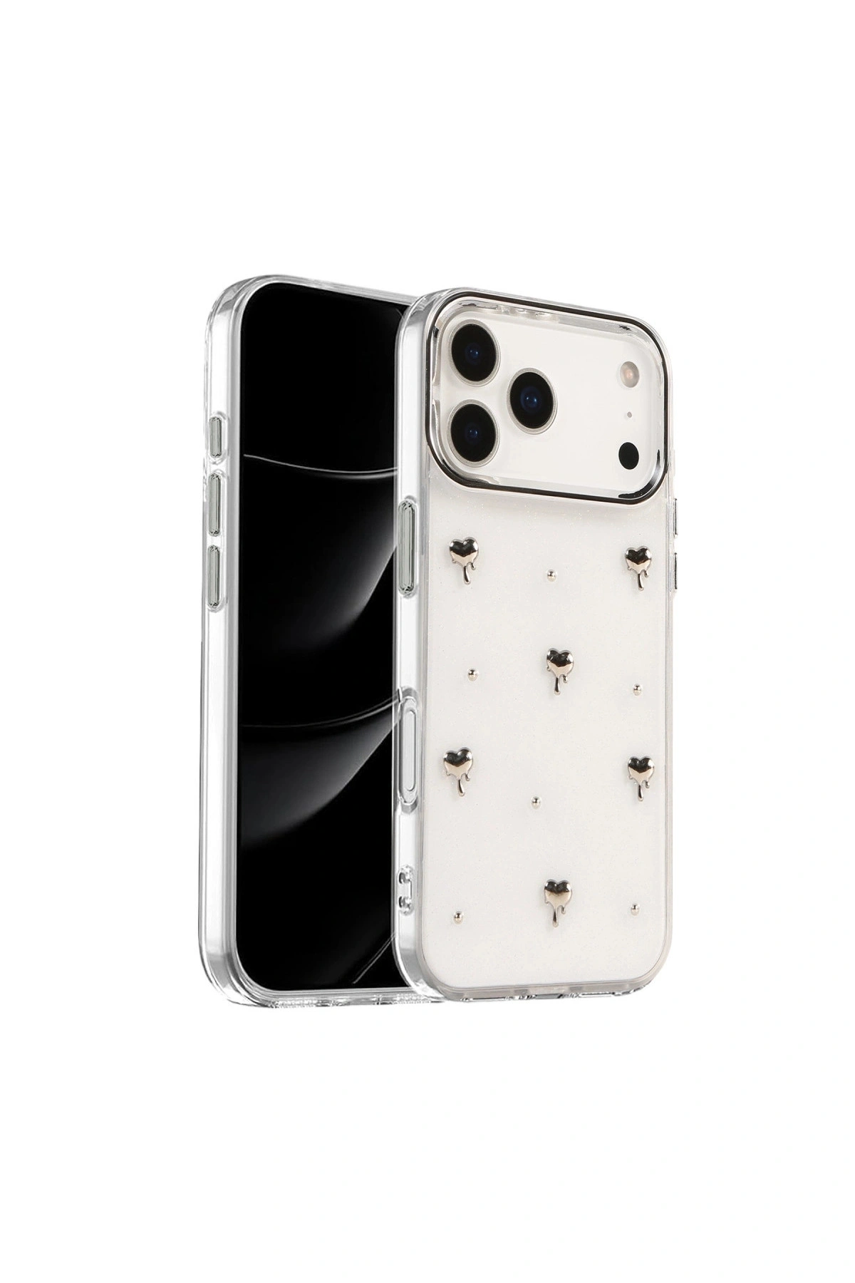 Fiyonk Desenli Kapak ✅ Zarafet ve Koruma Bir AradaFiyonk, yıldız, kelebek, lale, çiçek, kalp ve gül gibi zarif detaylarla süslenmiş bu kapak simli, şeffaf tasarımıyla estetik ve korumayı bir araya getiriyor.; Telefonunuzu yalnızca dış etkenlerden korumakla kalmaz, aynı zamanda ona göz alıcı bir stil kazandırır.; Günlük kullanımda dikkat çeken tasarımı sayesinde cihazınızın şıklığı öne çıkar.; ✅ Üstün Darbe KorumasıEsnek kenar yapısı ve dayanıklı malzemesiyle telefonunuzu darbelerden ve düşmelerden etkili bir şekilde korur.; Simli şeffaf yüzey, hem sağlamlık hem de görselliği bir arada sunarak cihazınızın görünümünü sergilemeye devam eder.; ✅ Konforlu ve Pratik Kullanımİnce ve hafif tasarımıyla telefonunuzu kalınlaştırmadan yüksek koruma sağlar.; Tüm tuşlar, bağlantı noktaları ve kamera çıkıntılarıyla tam uyumludur.; Kaymaz yüzeyi sayesinde elde daha güvenli bir tutuş sunar böylece günlük kullanımda rahatlık ve konfor sağlar.