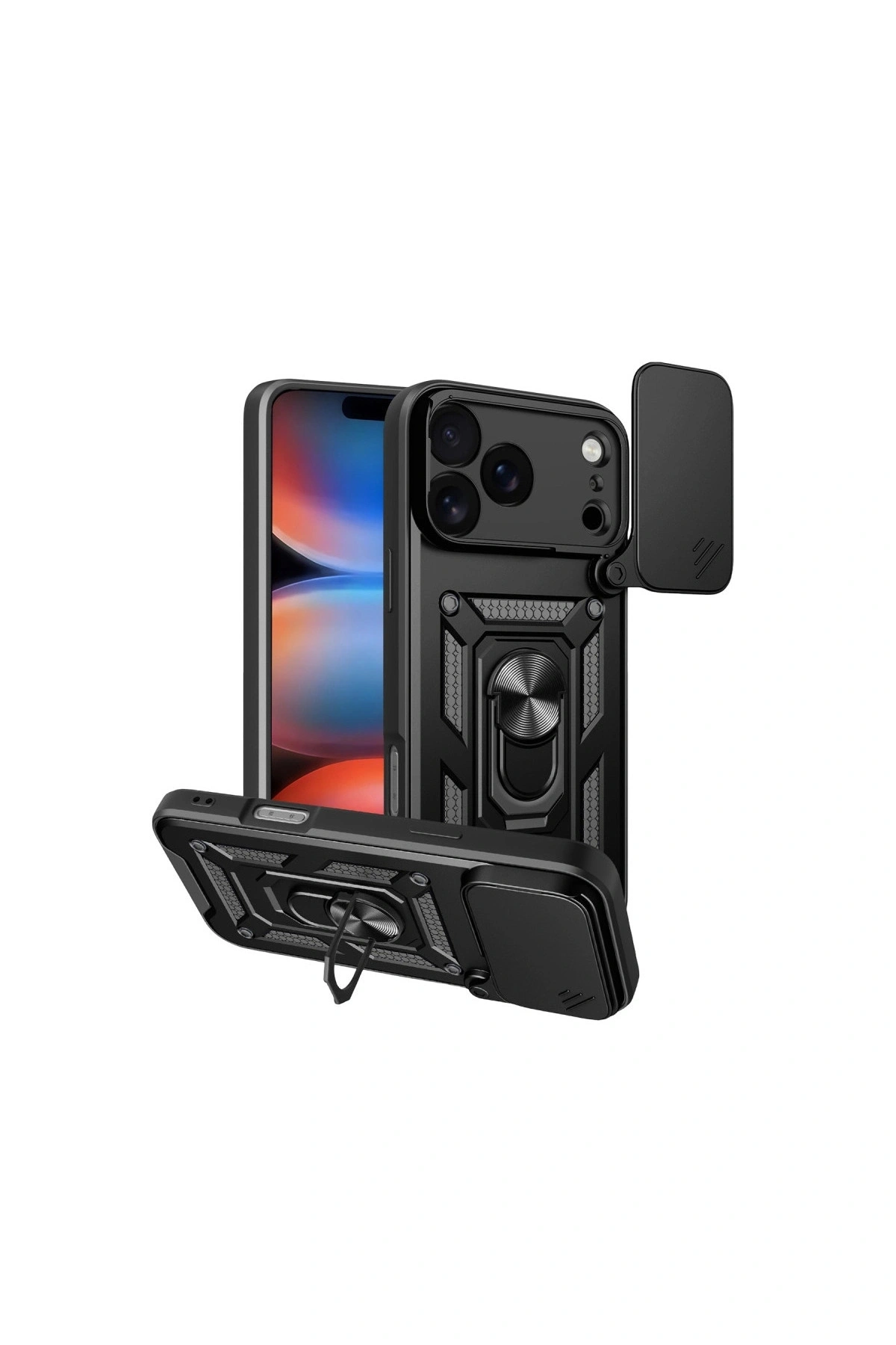 Pars Lens Yüzüklü Silikon✅ Soft ve Pürüzsüz Dış Yüzey Dayanıklı silikon dış kaplaması, mat ve yumuşak dokusuyla hem premium bir görünüm hem de üstün kavrama hissi sunar.; Leke ve parmak izi tutmayan yüzeyi sayesinde cihazınız her zaman temiz görünür.; ✅ Cihaza Tam Kalıp Uyumu Pars serisi, cihazınızın hatlarını birebir kavrayacak şekilde tasarlanmıştır.; Kamera çıkıntıları ve ekran çerçevesi etrafındaki yükseltilmiş kenarlar, düz yüzeylerle temasın önüne geçerek ekstra koruma sağlar.; ✅ Maksimum Darbe Koruması Sertleştirilmiş dış yüzey ve esnek iç katman ile entegre darbe emici yapı, cihazınızı düşme ve çarpma gibi günlük risklere karşı etkili şekilde korur.; Arka gövde ve köşeler dahil olmak üzere tam kapsama sağlar.; ✅ Kolay Tak-Çıkar Esnek Yapı Yüksek kaliteli silikon yapısı sayesinde kılıf cihazınıza kolayca takılır ve çıkarılır.; Formunu uzun süre korur, gevşeme veya deforme olma yapmaz.; ✅ Tüm Slotlara Erişim Sağlar Tuşlar, şarj girişi, mikrofon ve hoparlör gibi tüm bağlantı noktalarına tam erişim sağlar.; Tuş alanlarında yer alan hassas kesim ve yüzeyler, kusursuz kullanım deneyimi sunar.; ✅ Lens Korumalı Sürgülü Kapak Kamerayı çiziklerden, tozdan ve dış etkenlerden koruyan sürgülü lens kapağı sayesinde cihazınızın kamera modülü her zaman güvende olur.; Kullanmadığınız zamanlarda lensleri kapatarak ekstra koruma sağlar.; ✅ Metal Yüzük Stand Özelliği Kılıfın arka kısmında yer alan entegre metal halka hem tutucu hem de stand olarak işlev görür.; Eller serbest video izleme, içerik görüntüleme ya da masaüstü kullanımı için idealdir.; ✅ Sağlığa Zararlı Materyal İçermez Üründe kullanılan tüm malzemeler insan sağlığına ve çevreye uyumlu, BPA ve zararlı kimyasal içermeyen hammaddelerden üretilmiştir.