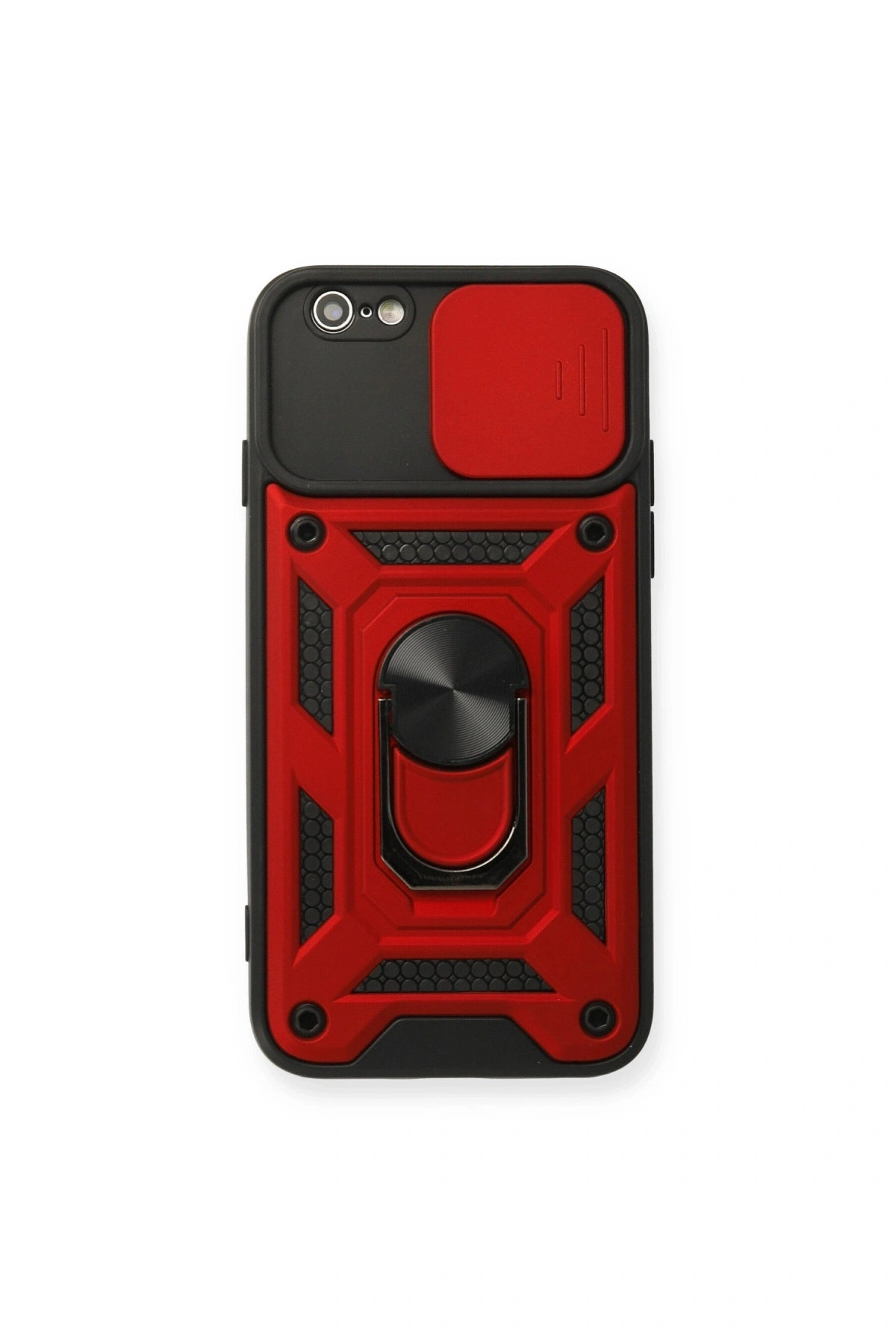 İphone 6 Kılıf Pars Lens Yüzüklü Silikon - Kırmızı
