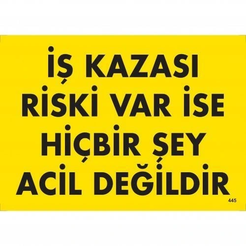 İş Kazası Riski Var İse Hiçbir Şey Acil Değildir Uyarı Levhası 25x35 KOD:445