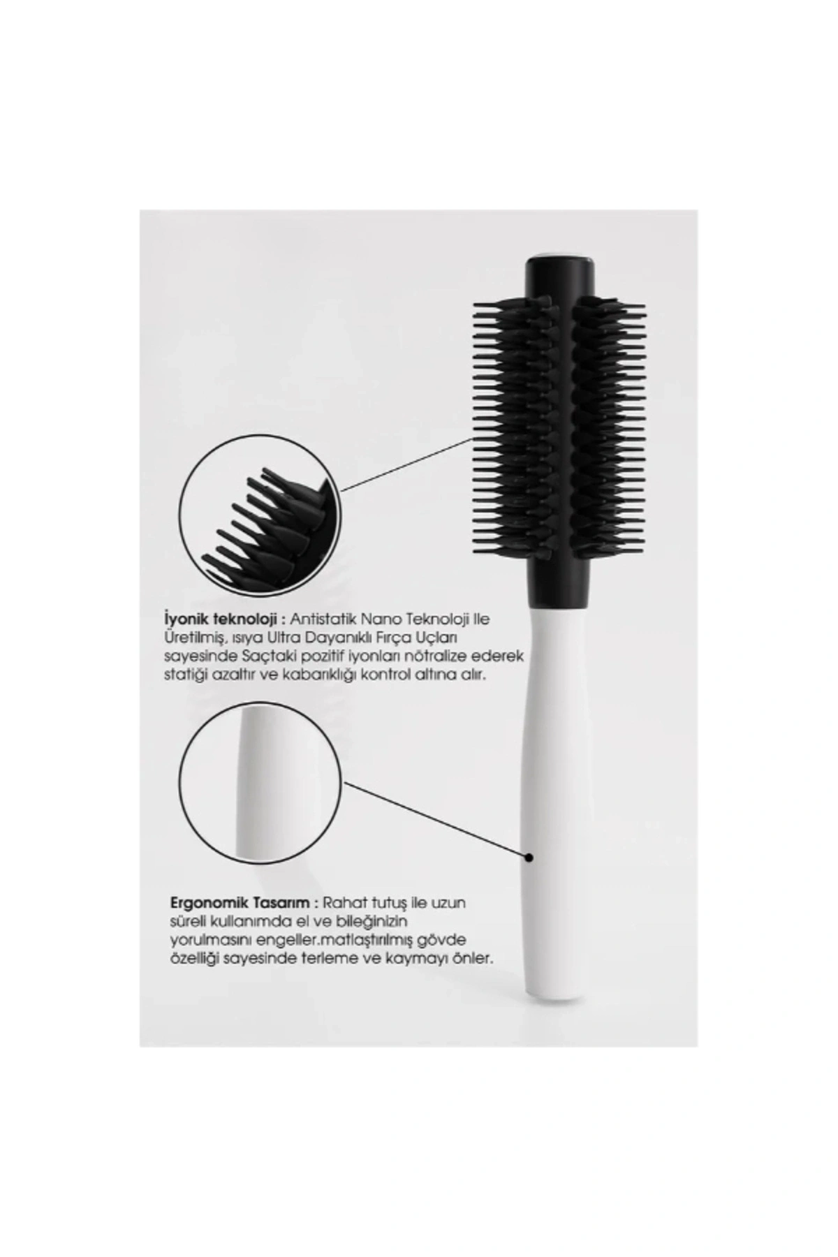 ChatGPT:ISIYA DAYANIKLI FÖN SAÇ FIRÇASIÜrün ÖzellikleriIsıya dayanıklı fön saç fırçası, her saç tipine uygun olarak tasarlanmıştır. Hem ıslak hem de kuru saçlarda güvenle kullanılabilir. Antistatik nano teknoloji ile üretilmiş olup, saç tellerinde oluşan elektriklenmeyi azaltarak saçın daha pürüzsüz ve parlak görünmesini sağlar. Ultra dayanıklı fırça uçları sayesinde yüksek ısıya karşı direnç gösterir ve saçın şekillendirilmesi sırasında bozulma yapmaz. Ergonomik tasarımı sayesinde elde rahat tutuş sağlar, uzun süreli kullanımda bileğin yorulmasını engeller. Mat gövde yapısı terlemeyi ve kaymayı önleyerek kolay kullanım imkanı sunar.Paket İçeriği1 adet Isıya Dayanıklı Fön Saç Fırçası1 adet ısıya dayanıklı fön saç fırçası