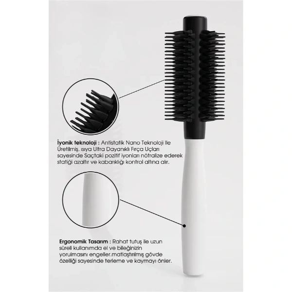 ChatGPT:ISIYA DAYANIKLI FÖN SAÇ FIRÇASIÜrün ÖzellikleriIsıya dayanıklı fön saç fırçası, her saç tipine uygun olarak tasarlanmıştır. Hem ıslak hem de kuru saçlarda güvenle kullanılabilir. Antistatik nano teknoloji ile üretilmiş olup, saç tellerinde oluşan elektriklenmeyi azaltarak saçın daha pürüzsüz ve parlak görünmesini sağlar. Ultra dayanıklı fırça uçları sayesinde yüksek ısıya karşı direnç gösterir ve saçın şekillendirilmesi sırasında bozulma yapmaz. Ergonomik tasarımı sayesinde elde rahat tutuş sağlar, uzun süreli kullanımda bileğin yorulmasını engeller. Mat gövde yapısı terlemeyi ve kaymayı önleyerek kolay kullanım imkanı sunar.Paket İçeriği1 adet Isıya Dayanıklı Fön Saç Fırçası1 adet ısıya dayanıklı fön saç fırçası