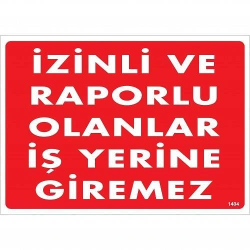 İzinli Ve Raporlu Olanlar İş Yerine Giremez Uyarı Levhası 25x35 KOD:1404