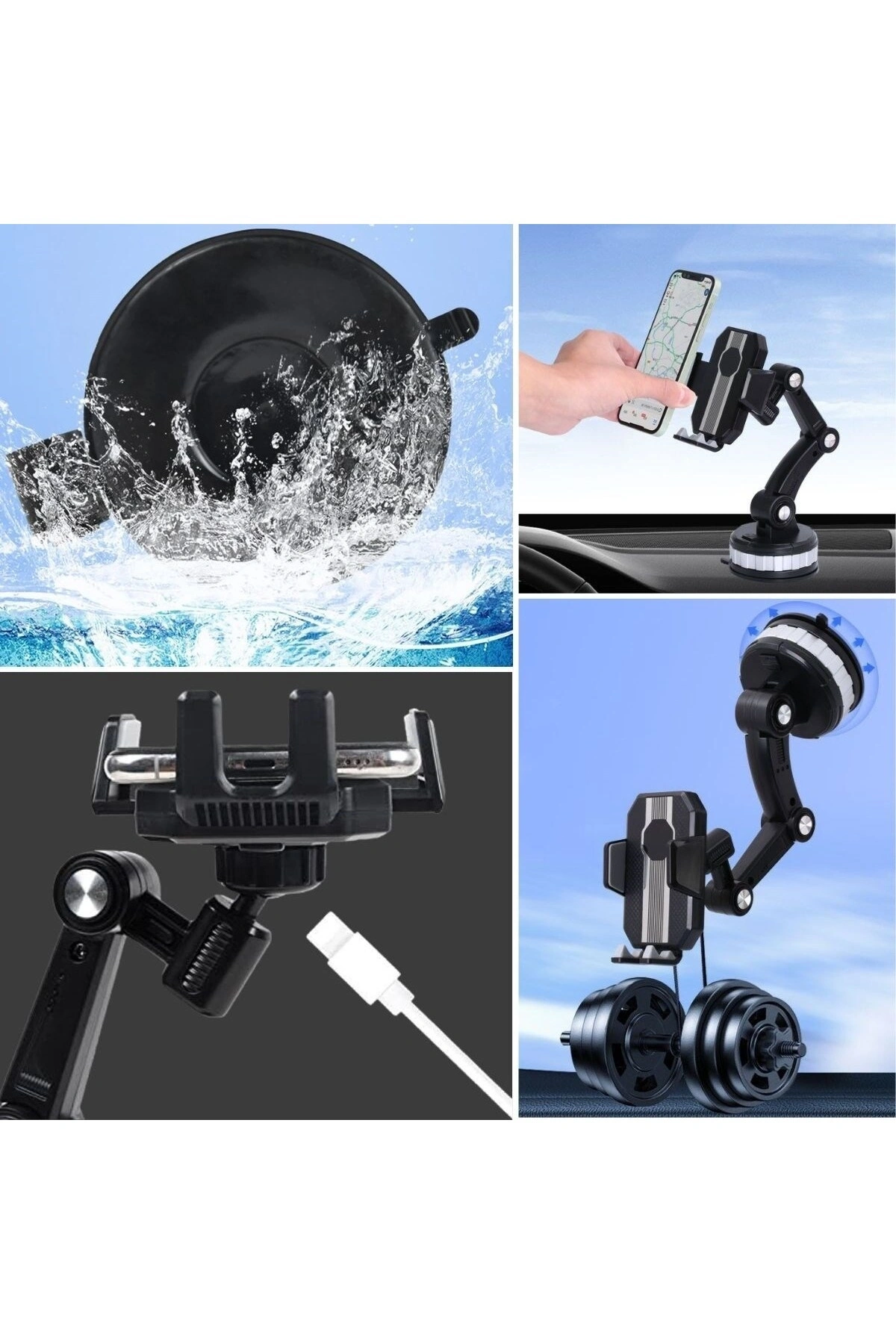 Jel Vantuzlu Cama Takılabilen Güçlü 360 Derece Dönebilen Ayarlanabilir Araç Içi Vantuzlu Telefon Tutucu Jel Vantuzlu Cama Takılabilen Güçlü 360 Derece Dönebilen Ayarlanabilir Araç İçi Vantuzlu Telefon Tutucu, araç içi telefon kullanımını son derece pratik ve güvenli hale getiren bir aksesuardır.; Yüksek kaliteli jel vantuzu, güçlü tutuş sağlarken, 360 derece dönebilir başlığı ile telefonunuzu istediğiniz açıda kullanma imkanı sunar.; Özellikler Güçlü Jel Vantuz: Özel jel malzemesi sayesinde cam yüzeylere güçlü bir şekilde yapışır.; Güvenli bir tutuş sağlar ve kolay kolay yerinden çıkmaz.; 360° Döner Başlık: Telefonunuzu yatay veya dikey olarak kullanmanıza olanak tanır.; Esnek başlık, telefonunuzu en rahat edebileceğiniz açıya ayarlamanızı sağlar.; Ayarlanabilir Tutucu: Farklı boyutlardaki telefonlarla uyumludur.; Telefonunuzu sıkıca tutar ve sarsıntılarda bile düşmesini engeller.; Kolay Montaj ve Çıkarma: Vantuzlu yapısı sayesinde cama veya düz bir yüzeye kolayca monte edilir ve çıkarılır.; Araç değiştirirken veya yerini değiştirmek istediğinizde hızlıca işlemi gerçekleştirebilirsiniz.; Dayanıklı Malzeme: Uzun ömürlü kullanım sunan sağlam malzemelerden üretilmiştir.; Isı ve güneş ışığından etkilenmez, dayanıklılığını korur.; Avantajlar Güvenli Sürüş: Telefonunuzu elinizde tutmak zorunda kalmadan kullanmanızı sağlar.; Navigasyonu veya çağrıları kolayca yönetebilir, böylece güvenli bir sürüş deneyimi yaşayabilirsiniz.; Esnek Kullanım: 360 derece dönebilen başlık sayesinde telefonunuzu istediğiniz açıda kullanabilirsiniz, bu da kullanım kolaylığı sağlar.; Kolay Montaj: Jel vantuz, güçlü tutuşu ile camda veya düz yüzeylerde güvenle kullanılabilir ve iz bırakmadan kolayca çıkarılabilir.; Geniş Uyumluluk: Çeşitli telefon modelleriyle uyumludur ve farklı araç tiplerinde kullanılabilir.; Kullanım Alanları Araç İçi Kullanım: Özellikle navigasyon, müzik dinleme ve çağrıları yönetme gibi işlevler için idealdir.; Farklı Araç Tipleri: Otomobil, SUV, kamyonet gibi farklı araç tiplerinde kullanılabilir.; Paket İçeriği 1 adet Jel Vantuzlu Cama Takılabilen Güçlü 360 Derece Dönebilen Ayarlanabilir Araç İçi Vantuzlu Telefon Tutucu