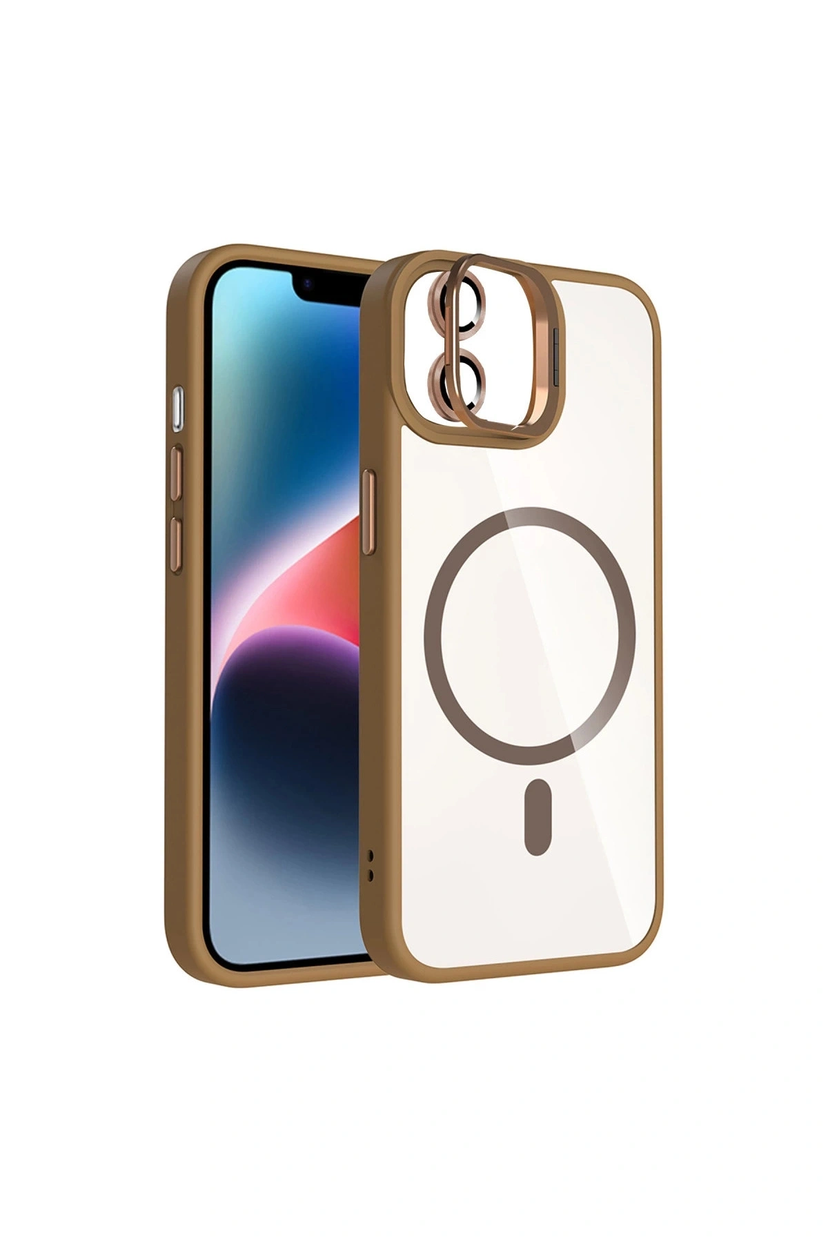 Joko İphone 11 Remim Lensli Magsafe Standlı Kapak - Kahverengi