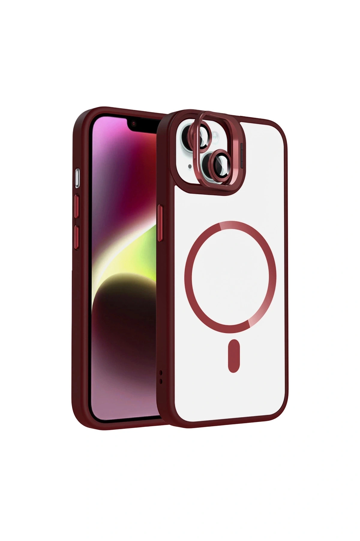 Joko İphone 13 Remim Lensli Magsafe Standlı Kapak - Bordo