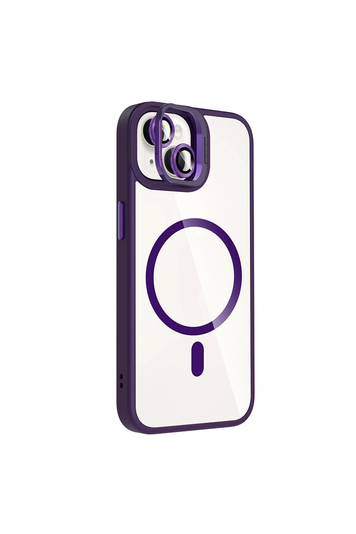 Joko İphone 13 Remim Lensli Magsafe Standlı Kapak - Derin Mor