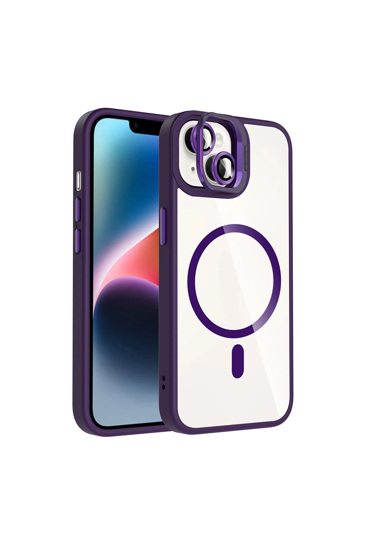 Joko İphone 14 Remim Lensli Magsafe Standlı Kapak - Derin Mor