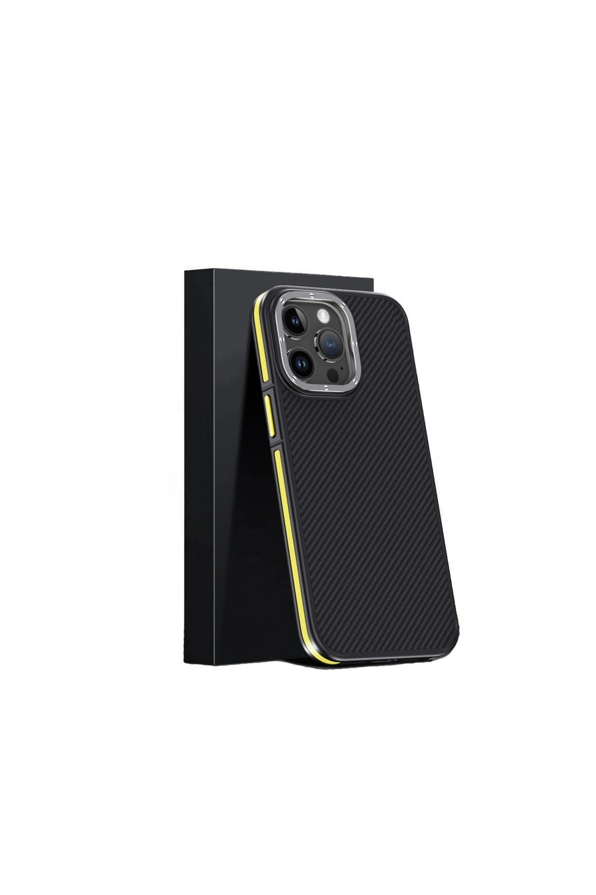 Joko İphone 15 Pro Max Kılıf Aramid 600d Kevlar Karbon Fiber Magsafe Kapak - Sarı