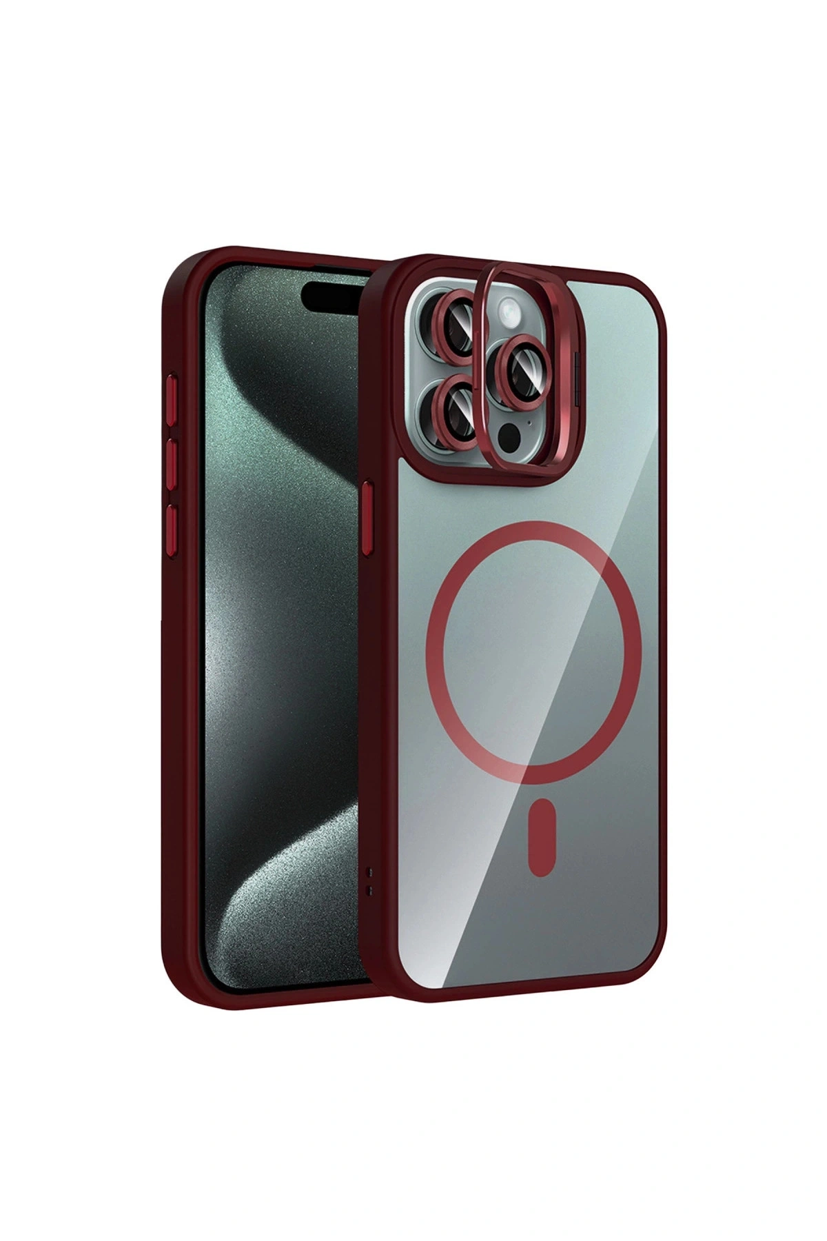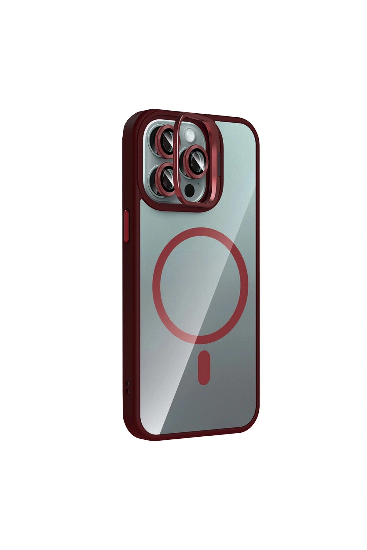 Joko İphone 15 Pro Max Remim Lensli Magsafe Standlı Kapak - Bordo
