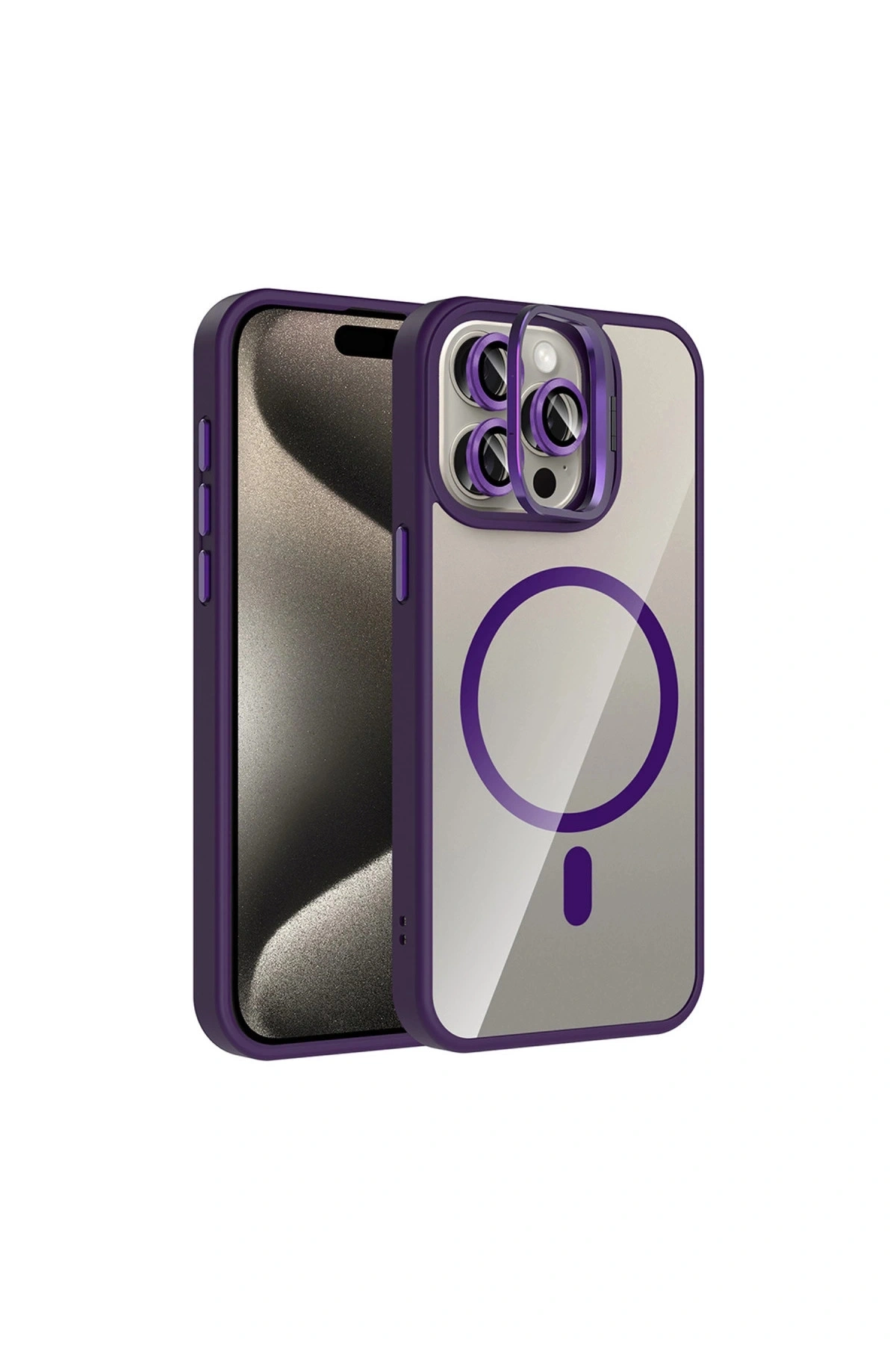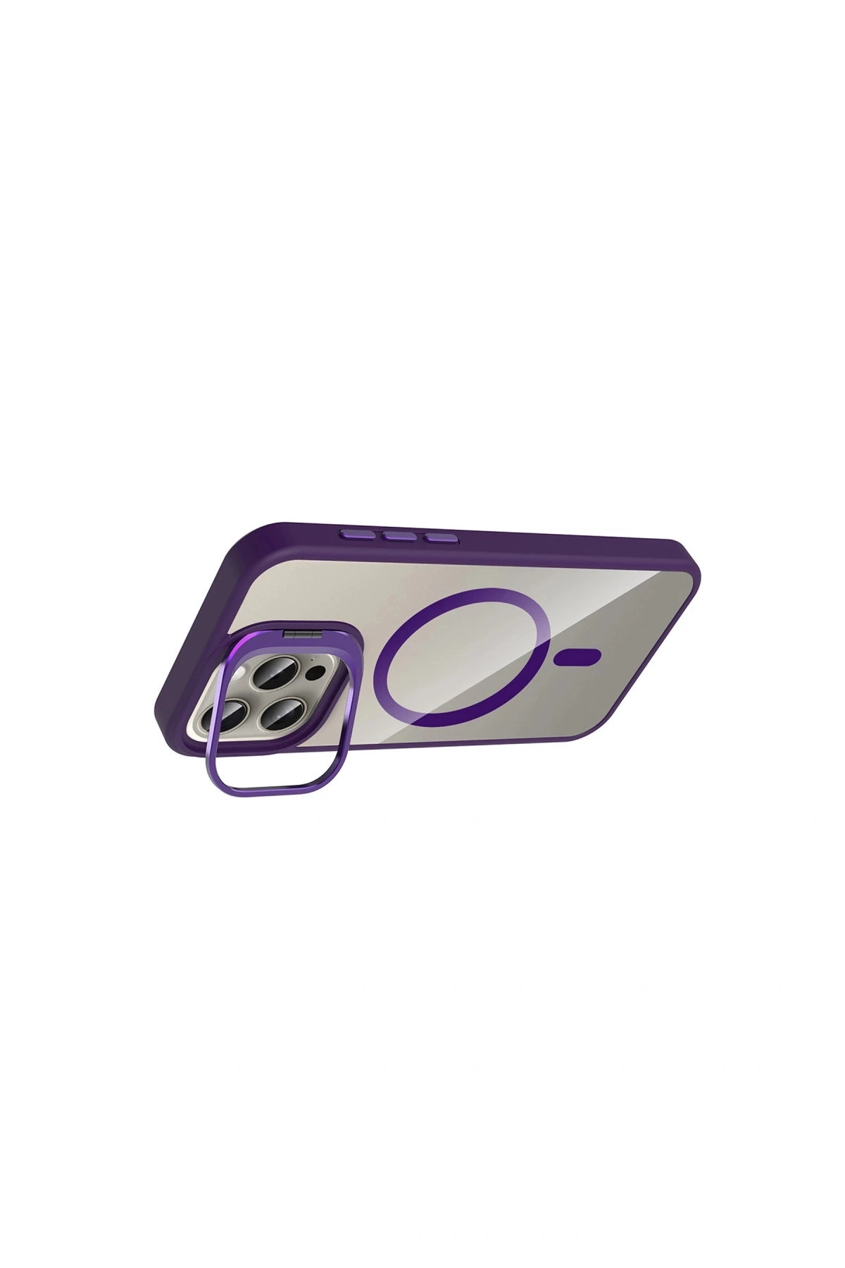 Joko İphone 15 Pro Max Remim Lensli Magsafe Standlı Kapak - Derin Mor
