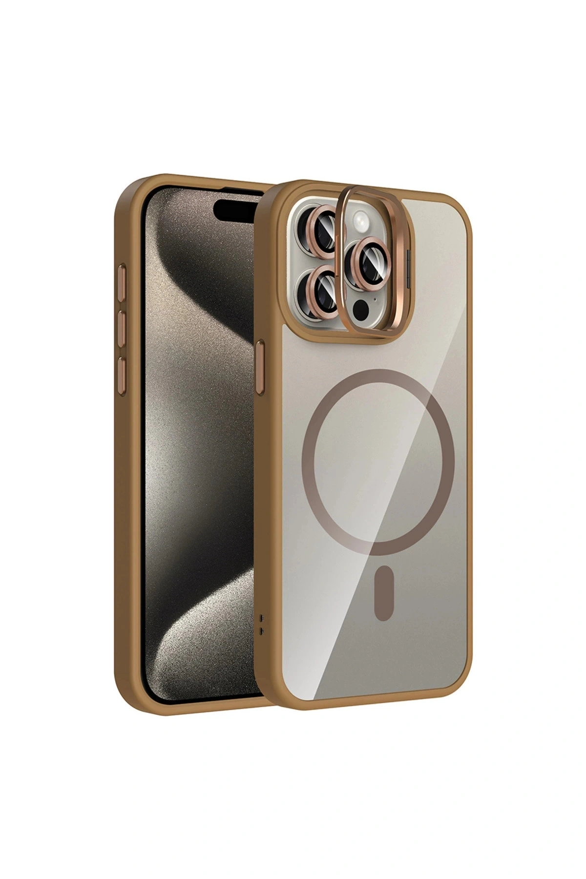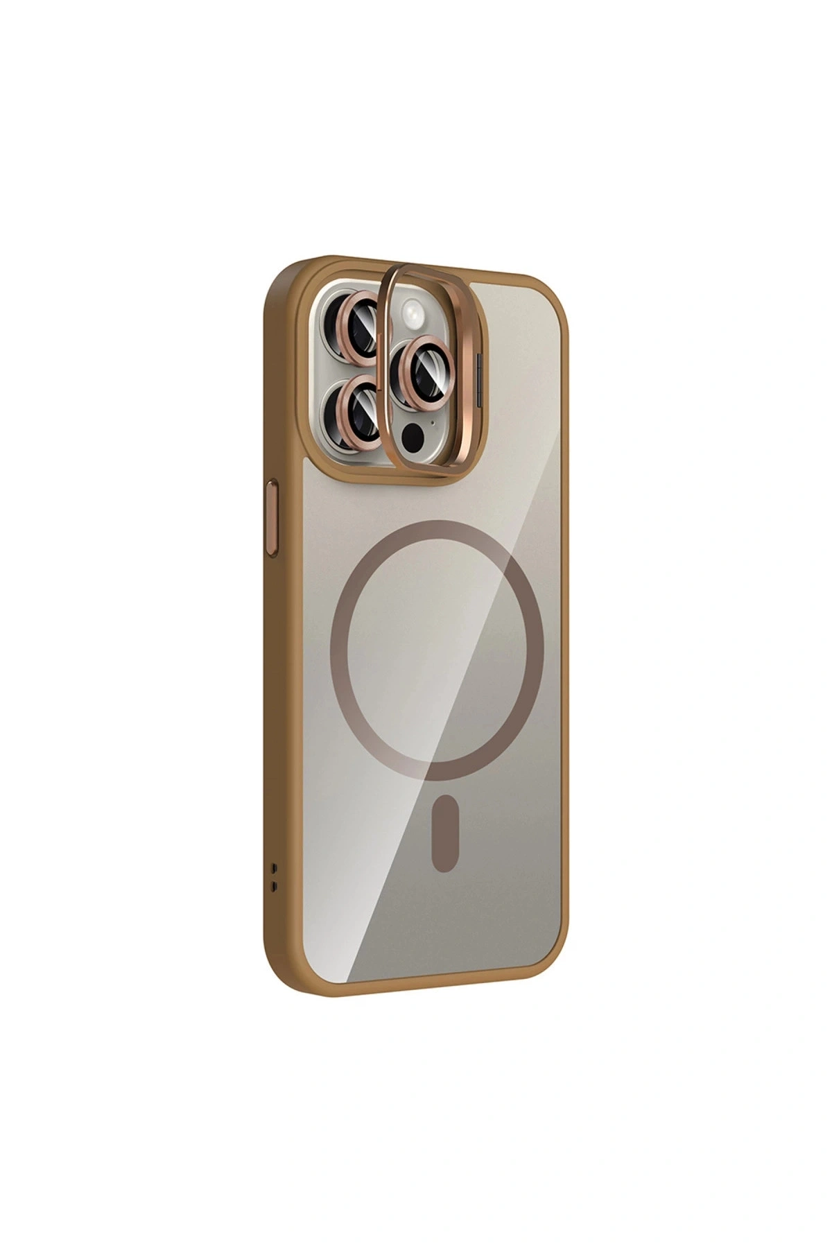 Joko İphone 15 Pro Max Remim Lensli Magsafe Standlı Kapak - Kahverengi