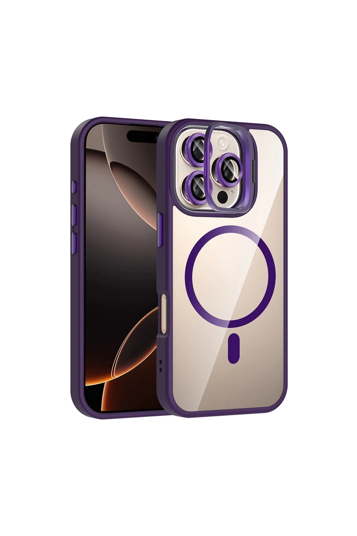 Joko İphone 16 Pro Max Remim Lensli Magsafe Standlı Kapak - Derin Mor