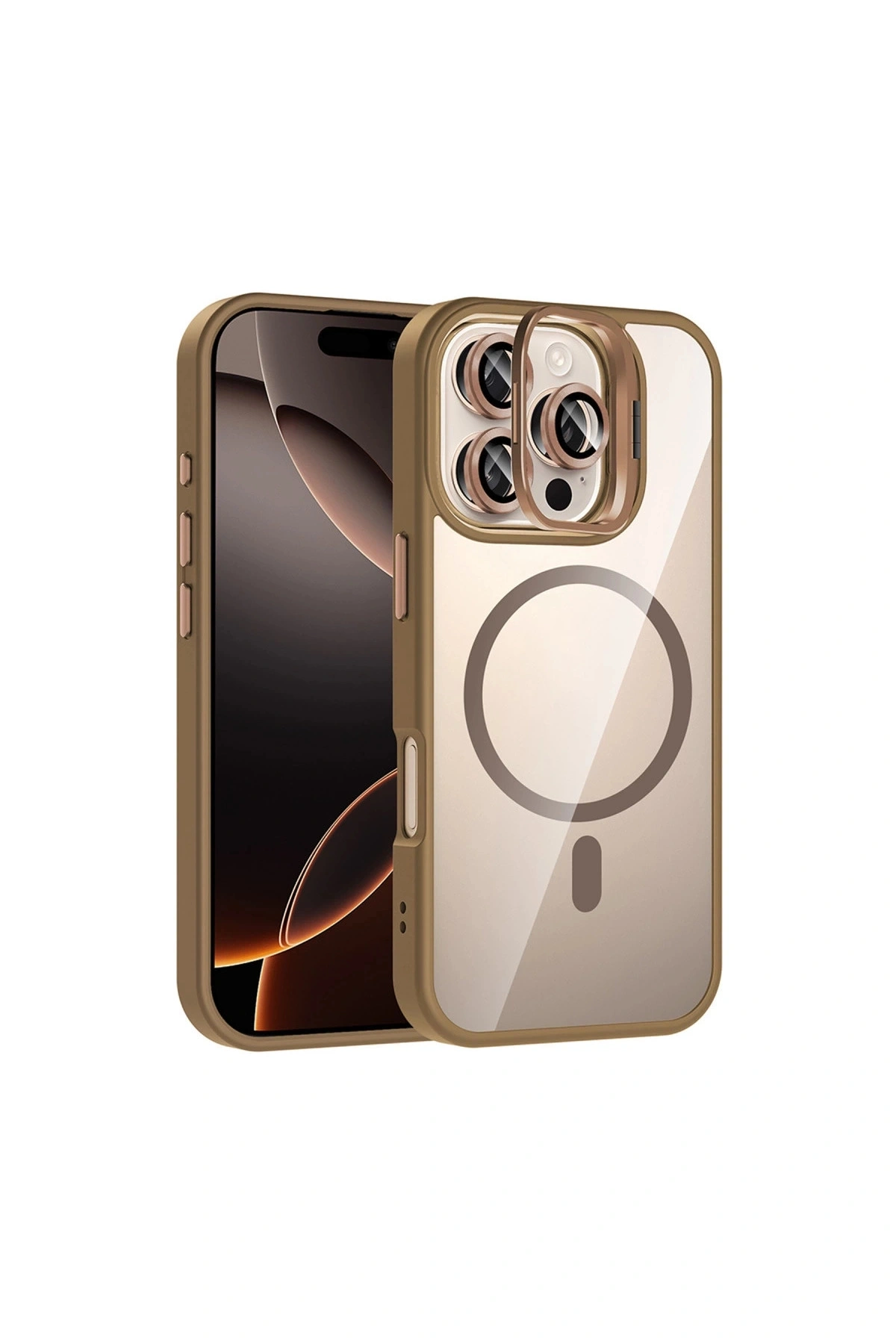 Joko İphone 16 Pro Remim Lensli Magsafe Standlı Kapak - Kahverengi