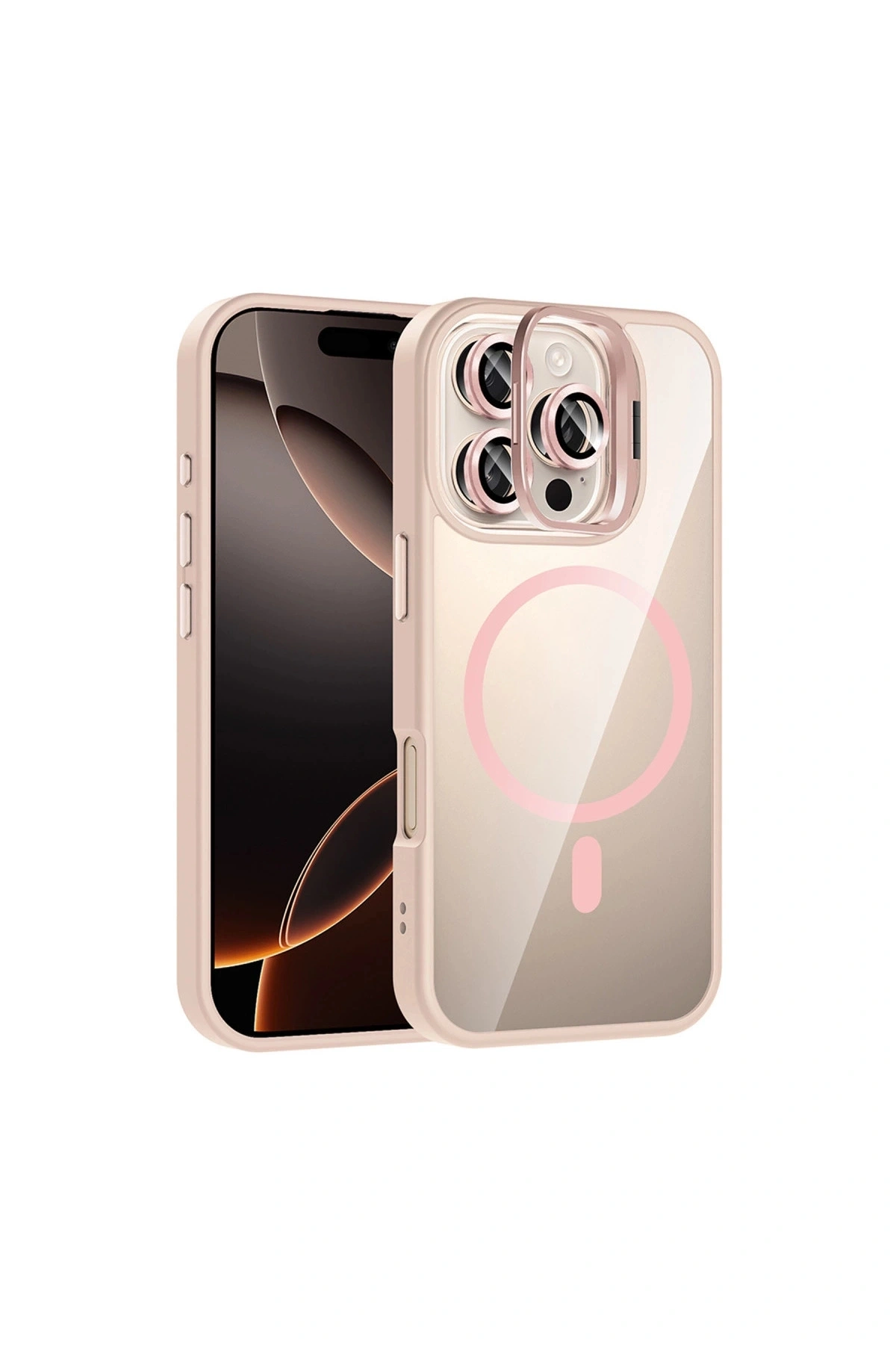 Joko İphone 16 Pro Remim Lensli Magsafe Standlı Kapak - Pembe