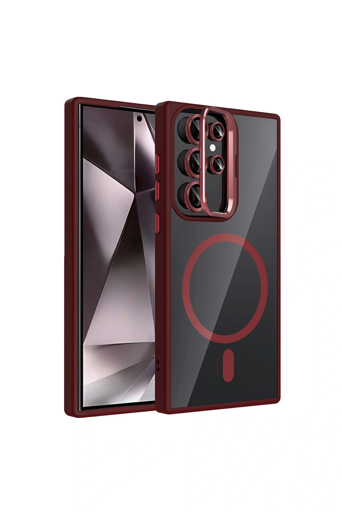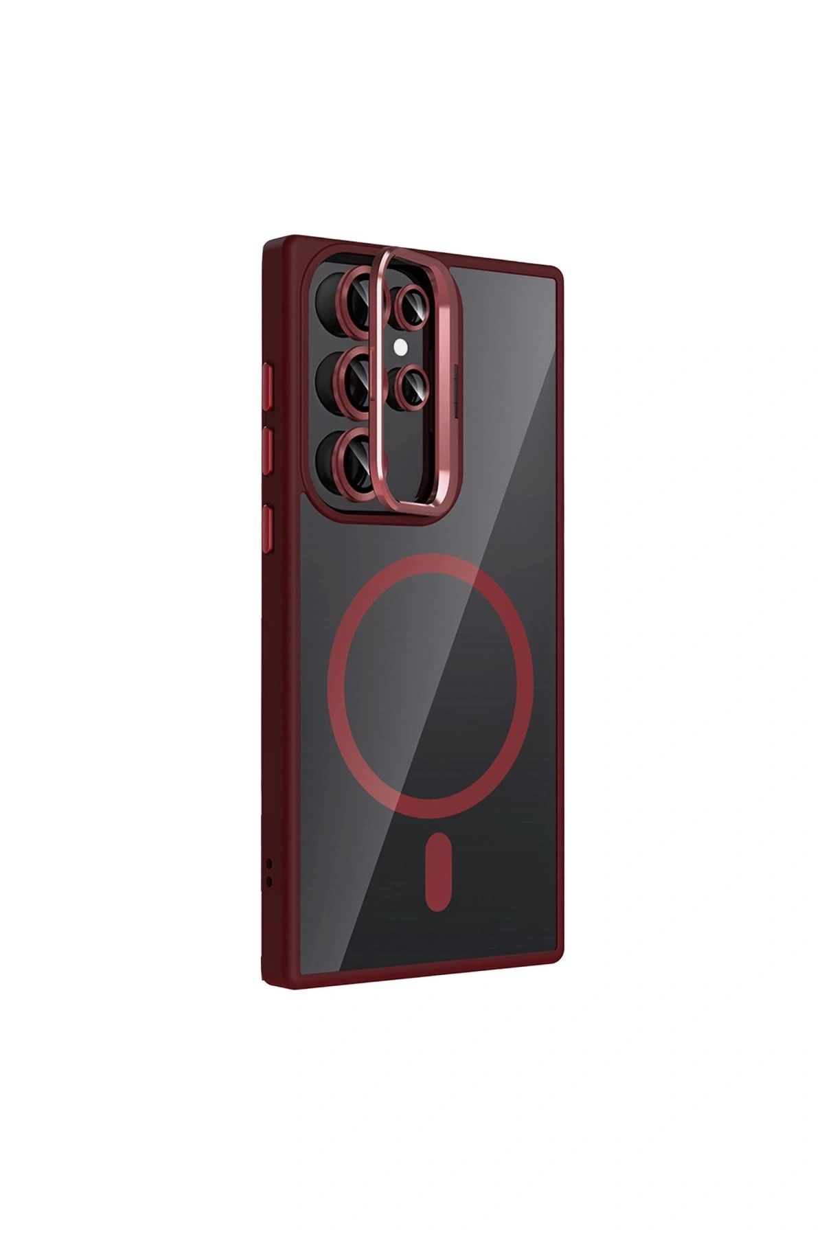Joko Samsung Galaxy S23 Ultra Remim Lensli Magsafe Standlı Kapak - Bordo