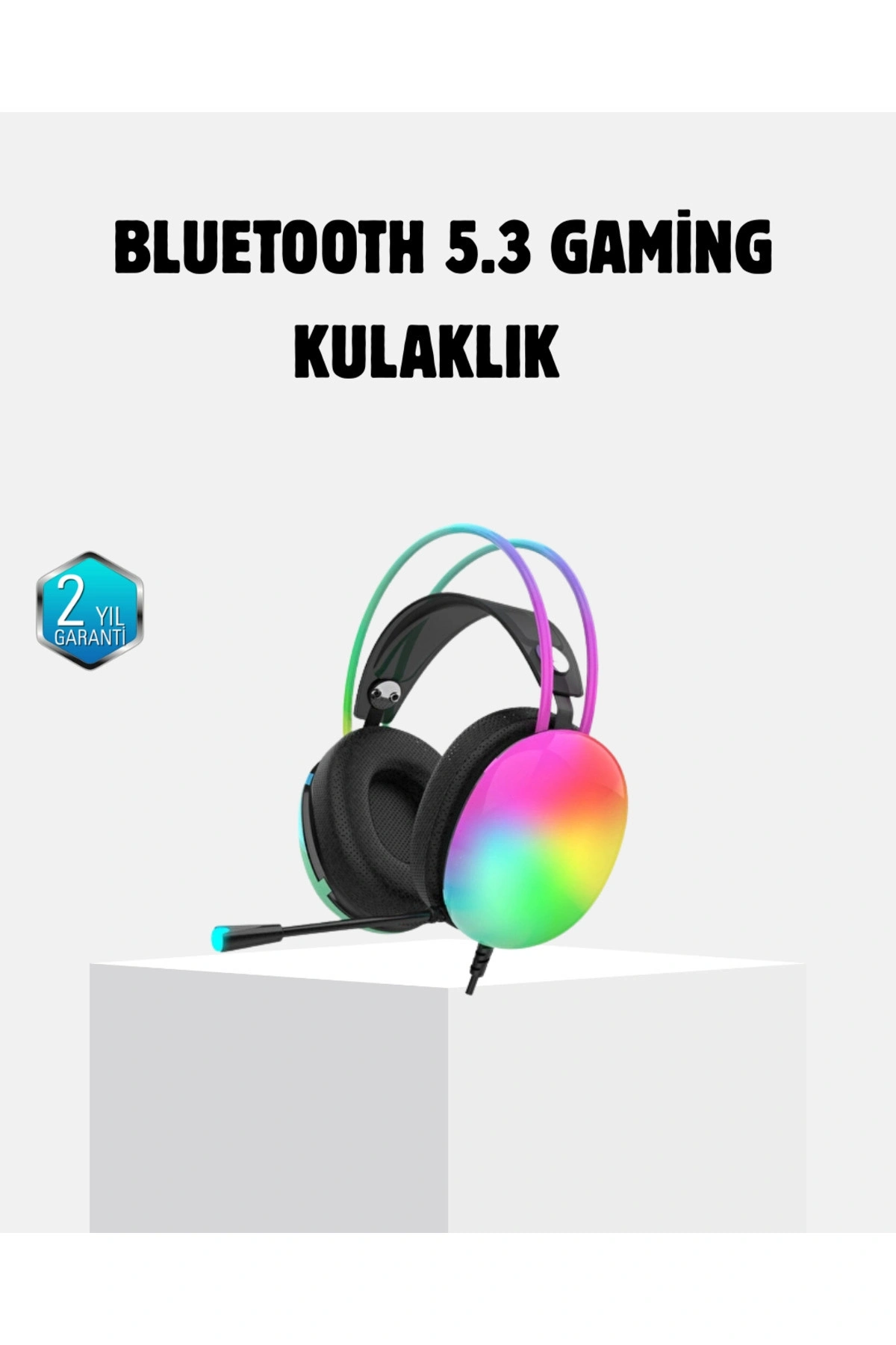 Konforu, dayanıklılığı ve yüksek ses performansını bir araya getiren RGB ışıklı Bluetooth kulaklık, uzun süreli kullanım için özel olarak geliştirilmiştir.; Hafif 280 gram tasarımı sayesinde, kulakta baskı yapmadan rahat bir kullanım sunar.; Başlık ve kulak pedlerinde kullanılan ergonomik yapı, kulak çevresine eşit basınç uygulayarak yorgunluğu azaltır.; Cilt dostu ve nefes alabilir kumaştan üretilen kulak pedleri, kulağı tamamen sararak dış ortam seslerini başarılı şekilde izole eder.; Gürültülü ortamlarda bile net bir ses deneyimi sunar.; 3D surround ses teknolojisi, özellikle oyunlarda gerçekçi bir atmosfer oluşturur.; Rakip adımlarını duymak, konum algısını geliştirmek ve detayları daha iyi duymak için ideal bir tasarımdır.; Bluetooth 5.3 teknolojisi, önceki Bluetooth sürümlerine göre daha kararlı ve hızlı bir bağlantı sağlar.; Düşük gecikme modu sayesinde oyun oynarken ses-görüntü senkronu korunur.; Müzik ve video deneyiminde de kesintisiz bir sunar.; Cihazın 800mAh bataryası, uzun kullanım süreleri için geliştirilmiştir.; Tek şarjla saatlerce oyun oynayabilir, müzik dinleyebilir veya telefon görüşmesi yapabilirsiniz.; RGB aydınlatma sistemi, kulaklığa modern ve şık bir görünüm kazandırarak oyun deneyimini daha etkileyici hale getirir.; IPX4 su dayanıklılığı, kulaklığı tereden ve su sıçramalarından korur.; Spor salonunda, yürüyüşte, yağmurlu havalarda veya uzun süreli kullanım gereken her ortamda güvenle kullanılabilir.; Hafif ve kompakt yapısı taşımayı kolaylaştırır.; Hem oyun severler hem müzik tutkunları hem de spor yapan kullanıcılar için ideal olan bu kablosuz kulaklık, güçlü performansı ve dayanıklı yapısıyla günlük hayatta vazgeçilmez bir aksesuar haline gelir.
