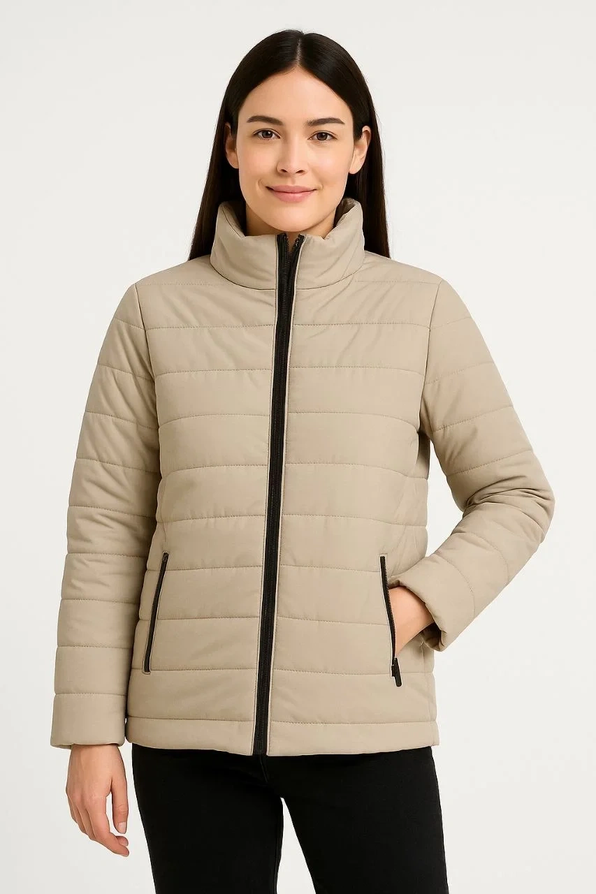 • Kadın Bomber Mont Ceket – Su İtici Kumaş, Kapitone Astarlı, Fermuarlı, Kışlık - Bej