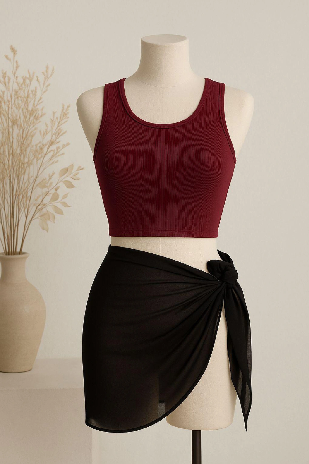 zarif Bordo Renkli Crop Üst, Yaz Aylarının Vazgeçilmez Parçası Olacak.siyah Pareo İle Kombinlenerek Şıklığınızı Tamamlayın; Her Ortamda Göz Alıcı Bir Görünüm Sunar.büstiyer Tasarımı Sayesinde Modern Ve Trend Bir Siluet Elde Edersiniz.bağlama Veya Bağcık Detayları İle Kolayca Ayarlama İmkanı Sağlar, Kişisel Konforunuzu Artırır.kısa Boy Kesimiyle Rahat Hareket Etme Özgürlüğü Tanırken, Plajda Da Şıklığınızdan Ödün Vermezsiniz.dokulu Tül Kumaşı