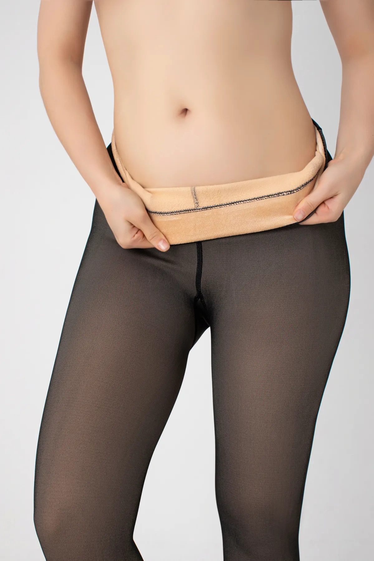 Kadın Peluş Tayt Yüksek Bel Kışlık Termal Kadın Külotlu Çorap Ten Rengi Görünümlü