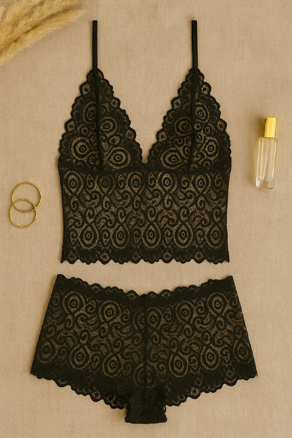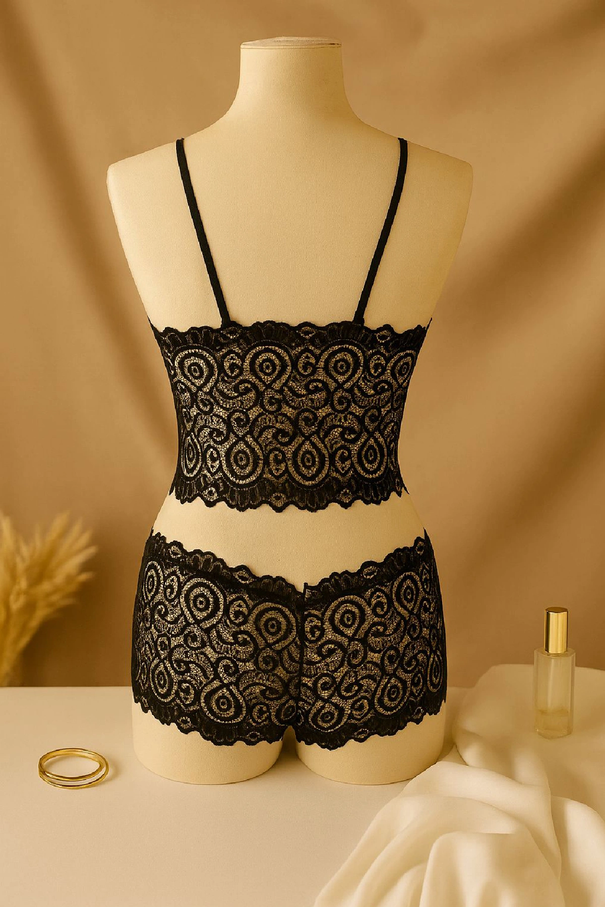 Kadın Siyah Dantel Bralet Şort Takımı – Şık, Zarif Ve Feminen İç Giyim