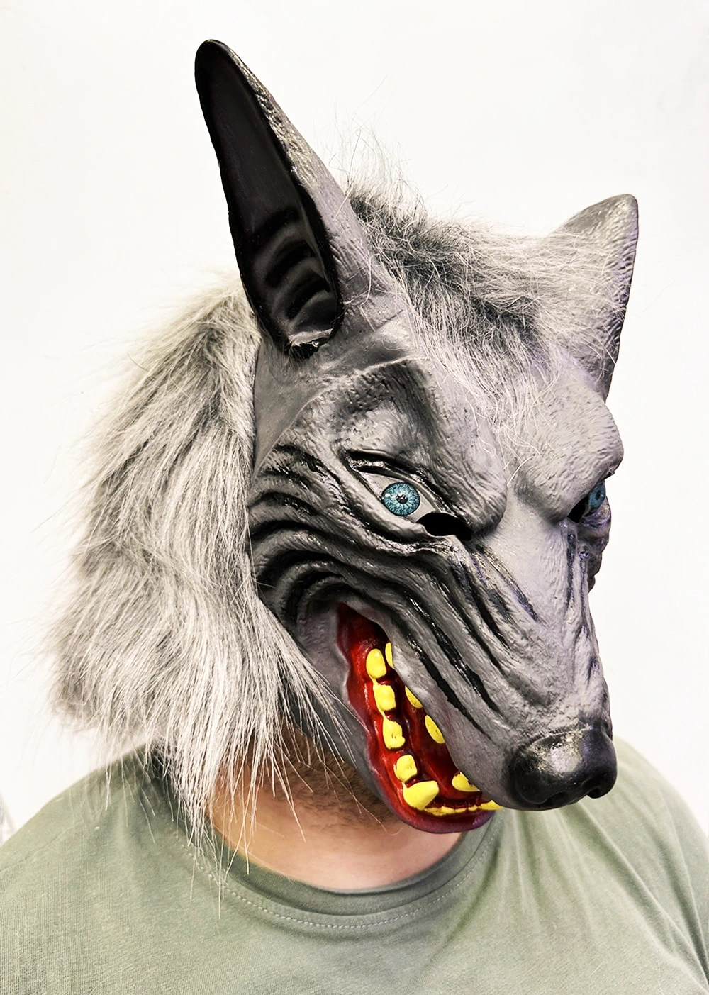 Kafaya Tam Geçmeli Lateks Mavi Gözlü Dişli Ağzı Açık Kurt Maskesi (5324)