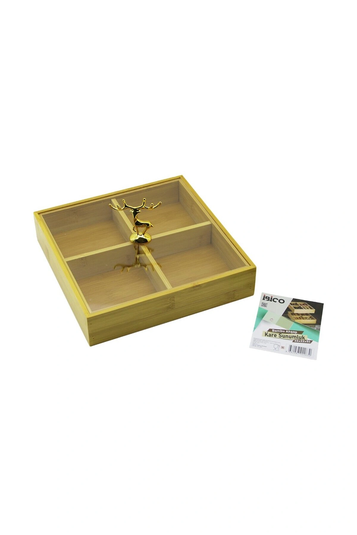 KARE 4 BÖLMELİ=2IN1=BÖLMESİZ ÇOK AMAÇLI KUTU AHŞAP BAMBU SERVİS SUNUM TEPSİ - TAHTASI 22X22X5CM (532