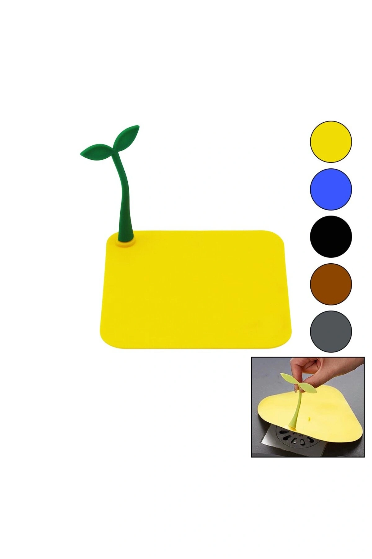 KARE GİDER KAPAK - SİLİKONSÜZGEÇ KOKU ÖNLEYİCİ RENKLİ MATÇİÇEK MODELİ TUTMA SAPLI - MEVCUT RENK GRİ
