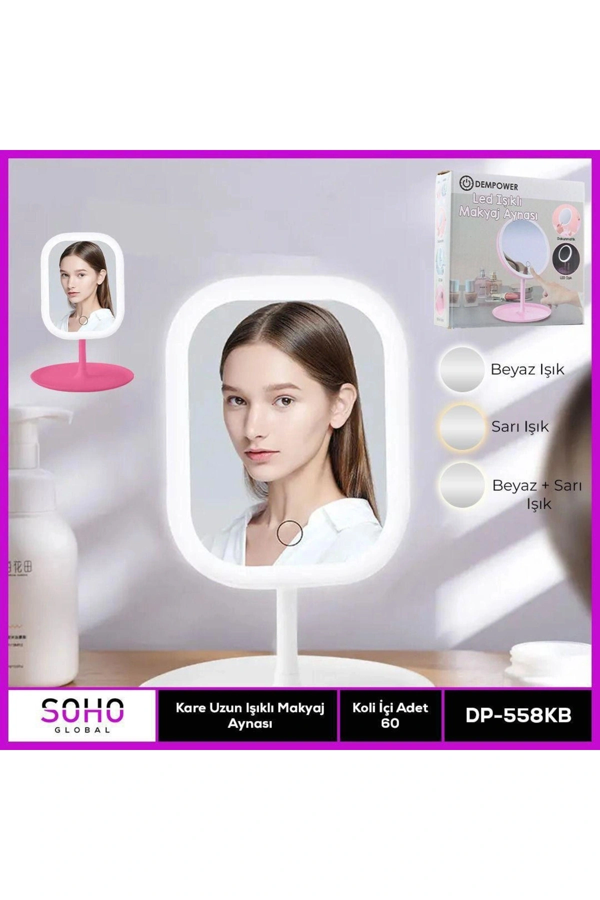 LED Işıklı Yuvarlak Makyaj Aynası – Dokunmatik Ayarlanabilir Işık Tonlu, 360 Derece Döner Masaüstü P