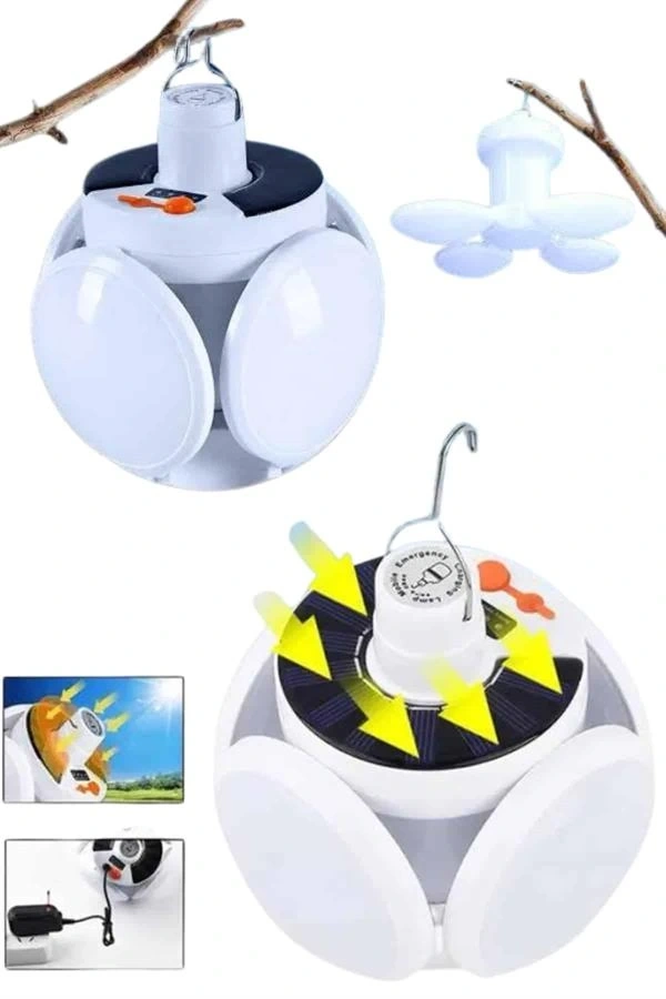 Solar Güneş Enerjisi ve USB Şarjlı 5 Kanatlı Taşınabilir Lamba – Çok Fonksiyonlu, Dayanıklı ve Çevre Dostu AydınlatmaHer türlü açık hava etkinliği, acil durumlar ve günlük yaşamda ihtiyaç duyduğunuz aydınlatmayı sağlayacak pratik bir çözüm arıyorsanız, Solar Güneş Enerjisi ve USB Şarjlı 5 Kanatlı Taşınabilir Lamba tam ihtiyacınızı karşılayacak özelliklere sahip! Güneş enerjisiyle veya USB ile şarj edilebilir özelliğiyle her koşulda güvenilir bir ışık kaynağı sunan bu lamba, taşınabilirliği ve pratik kullanımıyla ön plana çıkar.5 kanatlı tasarım, ışığı geniş bir alana yayarak daha etkili bir aydınlatma sağlar. Ayrıca, katlanabilir özellik sayesinde ışık açısını istediğiniz gibi ayarlayabilir ve karanlık alanlarda daha geniş bir bölgeyi rahatlıkla aydınlatabilirsiniz. Askı aparatı ile dilediğiniz yere asarak kolayca kullanabilirsiniz. Bu özellik, özellikle kamp, piknik ve açık hava etkinlikleri için son derece kullanışlıdır.Güneş enerjisiyle şarj etme özelliği, doğa dostu bir kullanım sunar. Ayrıca, USB şarj seçeneği ile hızla enerji depolayabilir, acil durumlarda her zaman kullanıma hazır olmasını sağlayabilirsiniz. Ürün, su geçirmez IP65 özelliğiyle dış mekan koşullarına dayanıklıdır, bu sayede yağmurda bile güvenle kullanılabilir.45 LED ışık kaynağı, ışığın parlaklığını artırarak etrafınızı net bir şekilde aydınlatır ve 6500K renk sıcaklığı ile etkili bir görüş sağlar. 6-8 saat çalışma süresi ile uzun süreli kullanım imkânı sunar.Teknik Özellikler:Güneş Paneli: 5.5V polikristal silikon güneş paneliPil: 18650 lityum pil, 2400mAhIşık Kaynağı: 45 LEDÇalışma Süresi: 6-8 saatŞarj Süresi: Solar şarj için 8 saat / USB şarj ile 6 saatŞarj Yöntemi: Solar şarj (DC 3.5V) / USB şarj (voltaj 4.5V)Su Geçirmezlik: IP65Renk Sıcaklığı: 6500KÜrün Boyutu: 14 cm * 11.5 cmPaket İçeriği:1 Adet 5 Kanatlı Solar Pratik LambaDoğada, evinizde ya da acil durumlarda kullanabileceğiniz bu solar lamba, yüksek verimliliği, dayanıklılığı ve esnek kullanım özellikleri ile her zaman yanınızda olması gereken bir aydınlatma aracı olacaktır. Hem güneş enerjisiyle hem de USB şarj ile enerji toplama seçenekleri sayesinde her durumda işinizi kolaylaştırır.