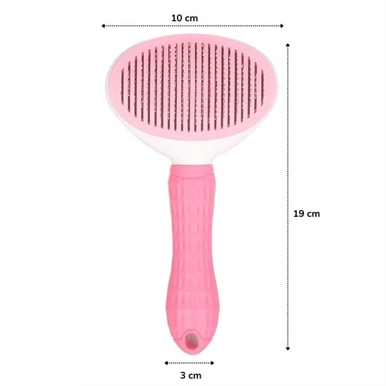Kedi Köpek Tüy Toplayıcı Kendini Temizleyebilen Ergonomik Saplı Kullanımı Rahat Kaymaz Evcil Hayvan Tarağı Pembe