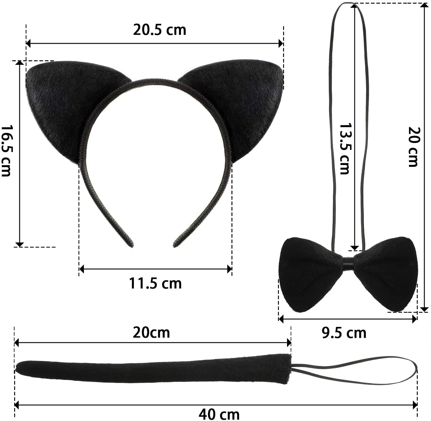 Kedi Kostüm Taç Kuyruk Papyon Seti 1 Adet (5324)