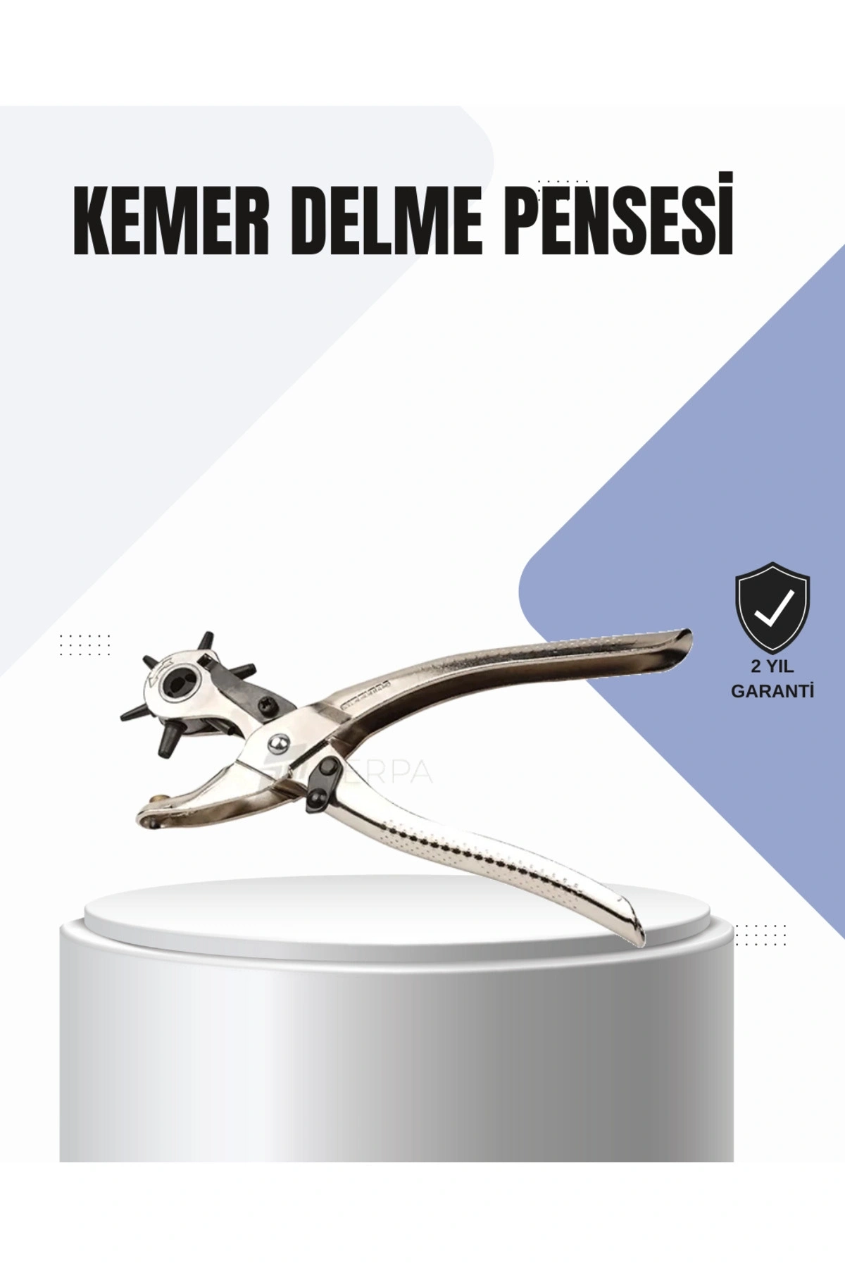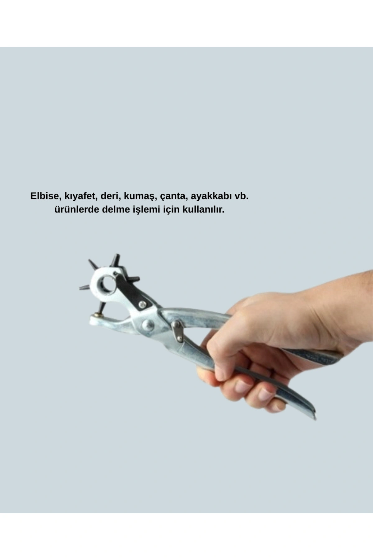 Bu çok yönlü deri delme pensesi, farklı malzemelerde yüksek hassasiyetle delik açabilmek üzere tasarlanmıştır.; Döner mekanizmasında bulunan 6 delik boyu, kullanıcıya tam esneklik sunar.; Kemerlerdeki delik genişletme ihtiyaçlarından çantaların kayış ayarlarına kadar pek çok işte kullanılabilir.; Sağlam metal gövdesi sayesinde darbeye ve uzun süreli kullanıma karşı dayanıklıdır.; Ergonomik sapı avuç içini yormaz, uzun süre çalışma gerektiren uygulamalarda bile maksimum konfor sağlar.; Kademeli baskı gücü, daha az kuvvetle daha etkili delme işlemi yapmanıza yardımcı olur.; Terziler, zanaatkârlar ve DIY hobi kullanıcıları için ideal bir üründür.