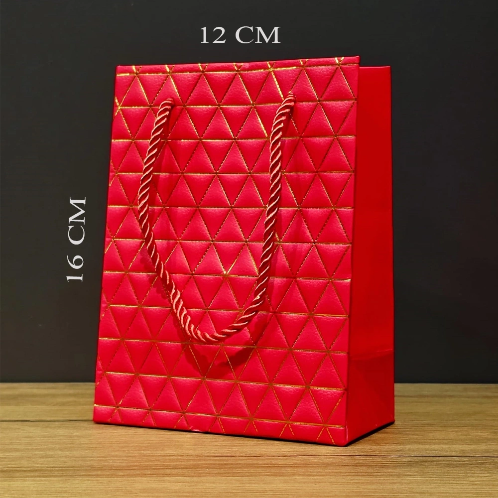 KIRMIZI GEOMETRİK DESENLİ MİNİ BOY KARTON HEDİYE ÇANTASI Ürün ÖzellikleriKüçük sürprizlerinize kırmızı rengin enerjisini ve zarafetini ekleyin! Kırmızı Geometrik Desenli Mini Boy Karton Hediye Çantası, modern üç boyutlu dokusu ve dikkat çekici rengiyle hediyenizin değerini ilk bakışta hissettirir. 16x12 cm boyutlarındaki kompakt yapısı; takı kutuları, saatler, butik parfümler veya küçük aksesuarlar için en ideal ve şık paketleme çözümüdür. Yüksek kaliteli ve kalın karton malzemeden üretilen gövdesi, üzerindeki geometrik kabartmalar sayesinde ışığı estetik bir şekilde yansıtarak prestijli bir duruş sergiler. Canlı kırmızı tonu; Sevgililer Günü, yılbaşı, yıl dönümleri veya romantik sürprizler için vazgeçilmez bir tercih oluşturur. Sağlam ve uyumlu kırmızı ip sapları ile küçük hediyelerinizi büyük bir şıklıkla sevdiklerinize ulaştırır.Ürün Teknik ÖzellikleriÖzellikAçıklamaBoyutlar16 cm (Yükseklik) x 12 cm (Genişlik)MalzemeBirinci Sınıf Kaliteli ve Kalın KartonTasarımLüks Kırmızı Geometrik Kabartma DesenliBoyut TipiMini Boy (Extra Small)Taşıma SapıUyumlu Kırmızı Tonlarında Dayanıklı İp SapKullanım AlanıSevgililer Günü, Yılbaşı, Takı ve Aksesuar PaketlemePaket İçeriği1 Adet Kırmızı Geometrik Desenli Mini Boy Karton Hediye Çantası (16x12 cm).