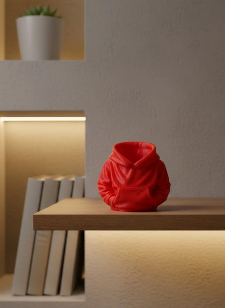 Kırmızı hoodie kalemlik, canlı rengi ve eğlenceli tasarımıyla masa üstlerine enerjik bir hava kazandırmak için tasarlanmıştır. 10x10 cm ölçüsü sayesinde masa üzerinde fazla yer kaplamadan kalem, silgi ve küçük ofis malzemelerini düzenli şekilde saklamaya yardımcı olur. Hoodie formu, ürünü klasik kalemliklerden ayırarak dikkat çekici bir görünüm sunar. Canlı kırmızı rengi, çalışma alanına hareket ve dinamizm katar. Ders çalışma masaları, ofis masaları ve genç odalarında rahatlıkla kullanılabilir. Hem düzen sağlayan hem de dekoratif bir obje olarak öne çıkan bu kalemlik, masa üstünde eğlenceli bir detay oluşturur. Kompakt yapısı sayesinde dar alanlarda bile rahatlıkla konumlandırılabilir. Kalemlerin ve küçük aksesuarların elinizin altında düzenli durmasını sağlar. Tek başına kullanıldığında bile masa üzerinde dekoratif bir tamamlayıcı olarak dikkat çeker. Dayanıklı yapısı ile günlük kullanım için uygundur. Hem işlevsel hem de enerjik bir masa aksesuarı arayanlar için ideal bir tercihtir. Aynı zamanda farklı ve kullanışlı bir hediye alternatifi olarak da değerlendirilebilir.
