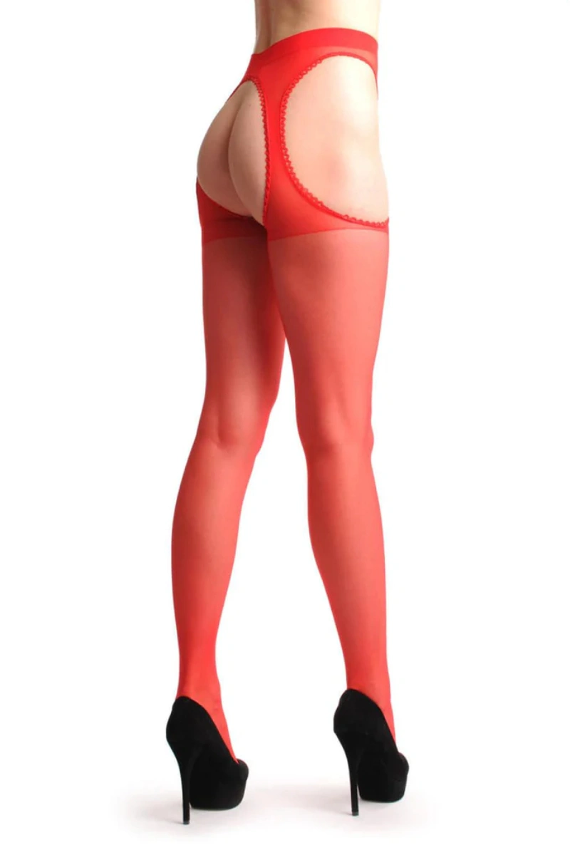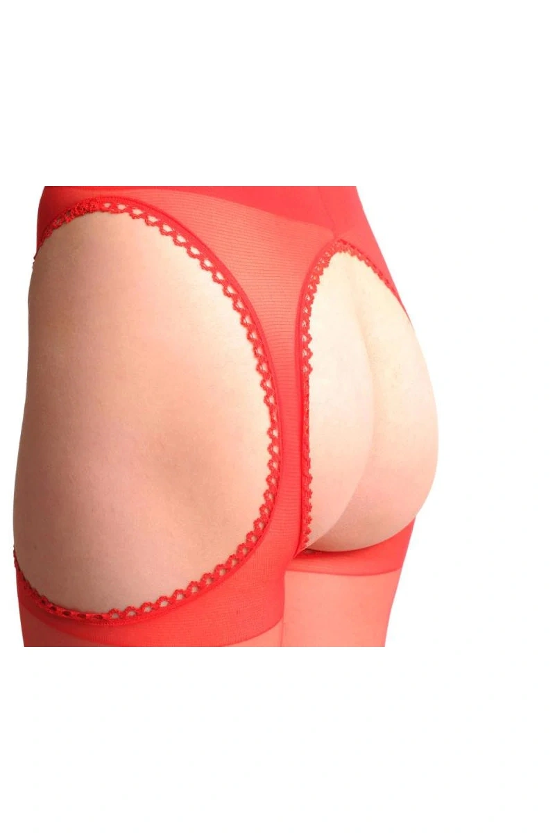 Kırmızı Kenarları Dantelli Özel Bölgesi Açık Külotlu Çorap
