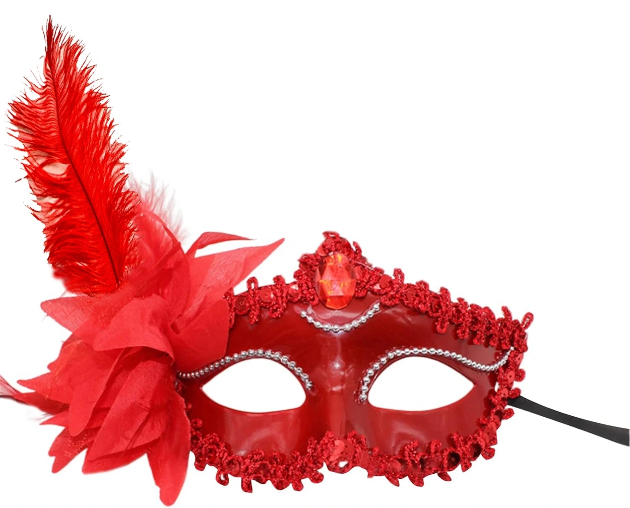 Kırmızı Renk Yandan Tüylü Güllü Parti Balo Venedik Maskesi 16x22, gizemli ve zarif bir görünüm oluşturmak isteyenler için tasarlanmış özel bir üründür. Kırmızı rengin asaleti ve yan tarafındaki tüy ve gül detayları ile göz alıcı bir stil sunarken, Venedik maskelerinin gizemli ruhunu da yansıtır.