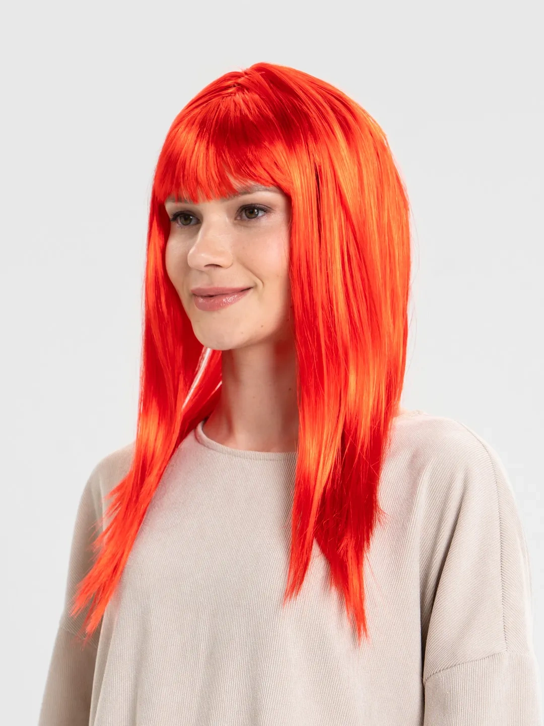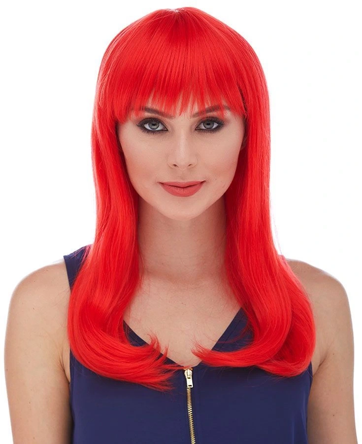 Kırmızı Renk Uzun Düz Parti Peruğu (5324)