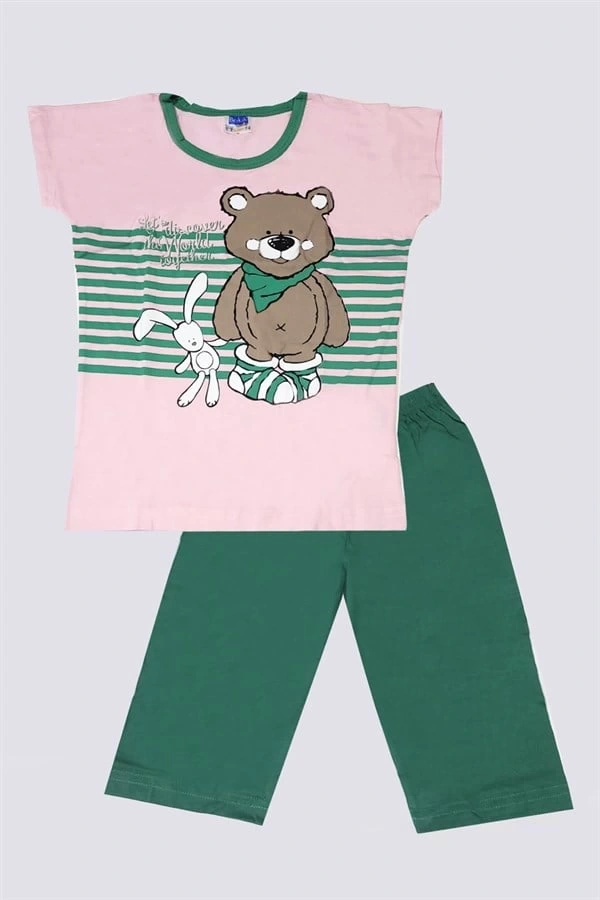 BERRAK Kız Çocuk Ayıcık Desenli Alt Üst Pijama Takımı, küçük prenseslerin rahat ve şirin bir şekilde uyumasını sağlar.