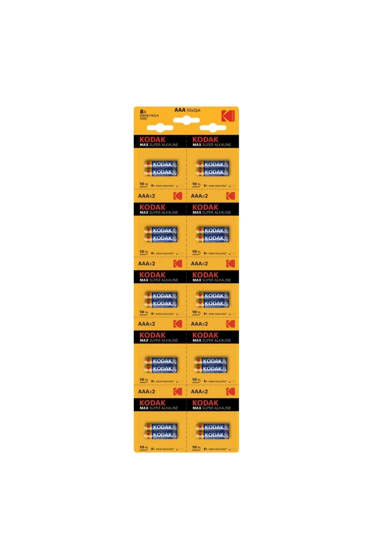 Kodak 20 Adet Max Super Alkalin 2'li Ayrılabilir Kartela ince PilYüksek Enerji Gerektiren Ürünlerde Günlük Kullanım için idealSıradan Çinko karbon pillere göre 15 Kat daha uzun ömürCiva, Kurşun ve Kadmiyum içermez30430752KAA-2X10 - Kodak 20 Adet Max Super Alkalin 2'li Ayrılabilir Kartela ince PilCAT Numarası : 30430752Ürün Kodu : K3A-2X10Ürün Açıklama : Kodak 20 Adet Max Super Alkalin 2'li Ayrılabilir Kartela ince PilRaf Ömrü : 10 YılNominal Güç : 1.5 VoltNominal Kapasite : 1150 mAh at 75 Ohms Dahili Empedans : 0.18 OhmsÖnerilen Depolama Sıcaklığı : 10 – 25 °CÇalışma Sıcaklığı : -20 – 54 °CKimyasal Sistem : Alkaline, MnO2 / KOH / Zn
