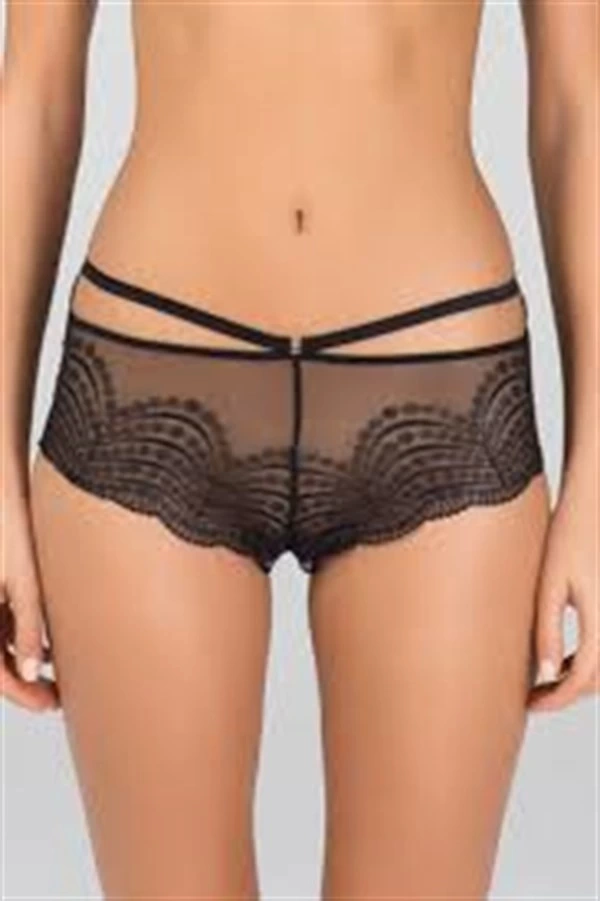 Orta / Düşük Bel, İnce Lastikli, Ön Orta Kısımdan Yan Kısımlara Doğru İpli, Transparan Kumaş Üzerine Dalgalı İşleme Detaylı, Mikro Kumaşlı Boxer / Şort Külot