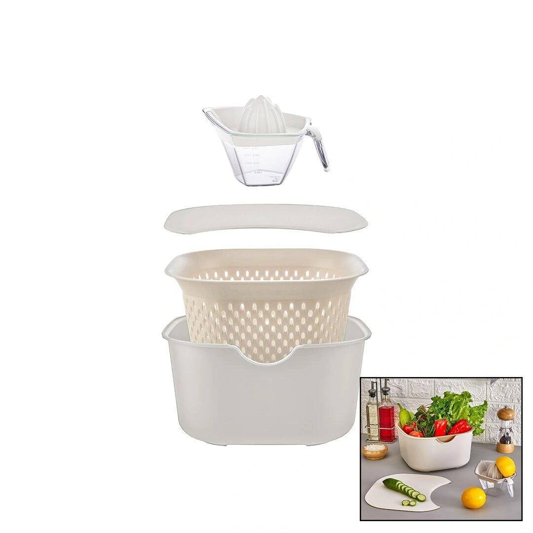 KREM 5PCS MUTFAK SETİ PLS.KARIŞTIRMA KAP=4LT - SÜZGEÇ=3.5LT - KESİM PANO - SIKACAK=0.25LT (5324)