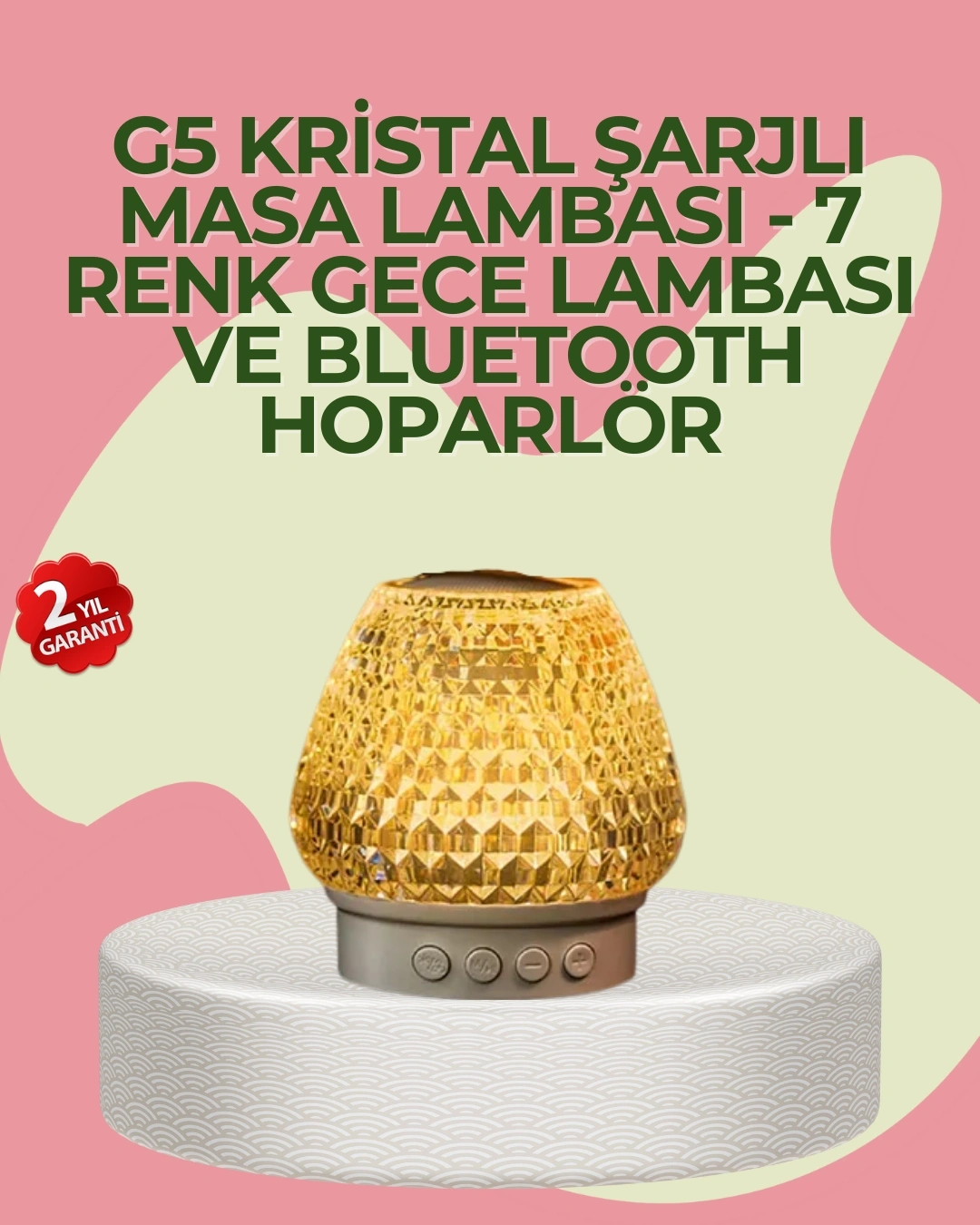 Bu taşınabilir hoparlör, şık kristal desenli tasarımı ve LED ışıkları ile bulunduğunuz her ortamda dikkat çeker. 7 farklı ışık modu ile ortama istediğiniz ruhu katabilirsiniz. Bluetooth 5.1 teknolojisi ile telefon, tablet veya bilgisayarınızla 15 metreye kadar bağlantı sağlar. 5W çıkış gücü sayesinde güçlü ve net ses kalitesi sunar. 1200 mAh bataryası tek şarjda 2-10 saat müzik dinleme imkanı verir. Sadece 1 saatte tamamen şarj olur, hızlı ve pratik kullanım sağlar. Hafif ve taşınabilir yapısı ile evde, ofiste, piknikte veya plajda rahatlıkla kullanabilirsiniz. Dokunmatik kontrol paneli sayesinde ışıkları kolayca değiştirebilir, kullanım konforunu artırabilirsiniz.