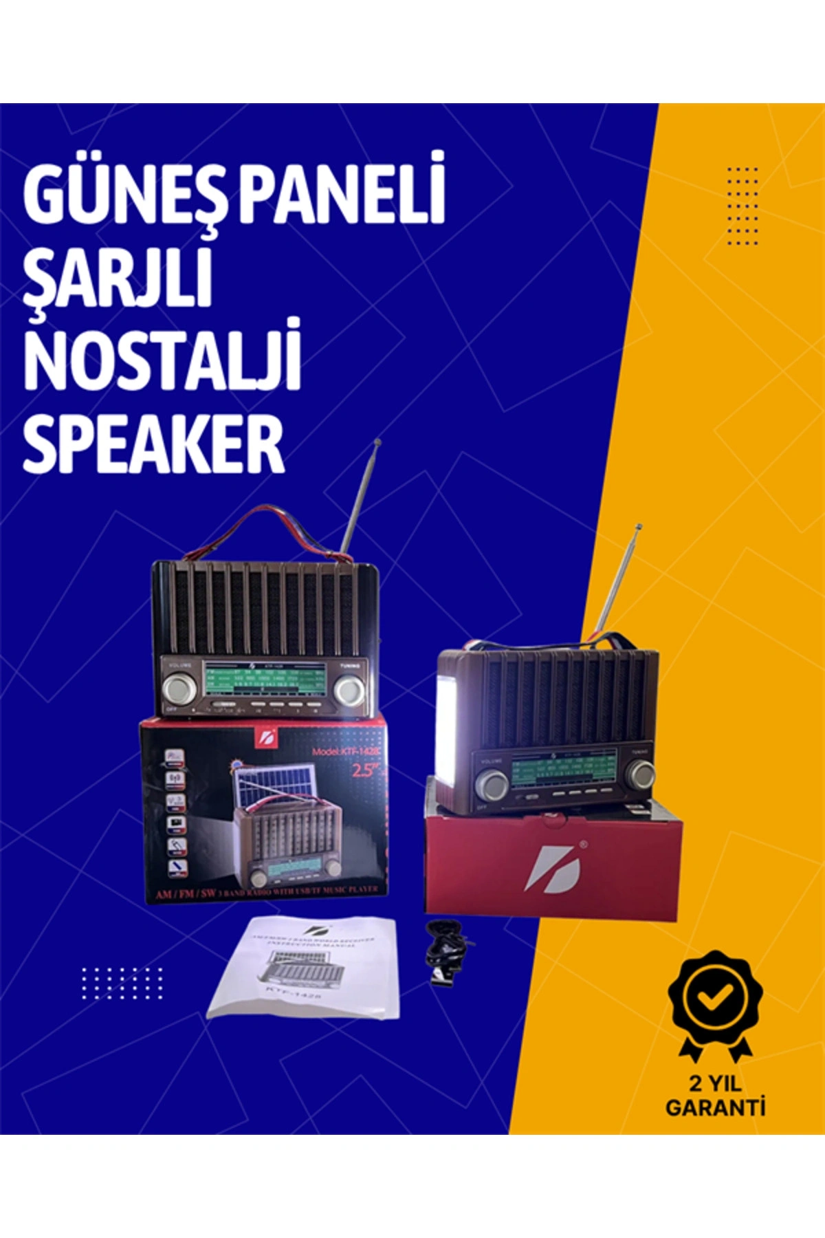 KTF-1428, klasik radyolardan ilham alan tasarımıyla nostalji severler için şıklığı ve teknolojiyi bir araya getiriyor.; Güneş paneli sayesinde çevre dostu ve mobil bir müzik deneyimi sunar.; Cihaz, USB bellek ve SD kartlardaki MP3 dosyalarını destekler; böylece harici bir oynatıcıya ihtiyaç duymadan doğrudan müzik dinleyebilirsiniz.; FM, AM ve SW bantları ile radyo yayınlarını da kesintisiz dinleyebilirsiniz.; Bluetooth özelliği sayesinde mobil cihazlarla anında eşleşir.; Şarj edilebilir bataryası, portatif taşıma kolu, 220V AC ve 6V DC güç seçenekleri ile her yerde kullanılabilir.; Evde, parkta, piknikte ya da seyahatte yanınızdan ayırmak istemeyeceğiniz çok yönlü bir müzik çözümüdür.