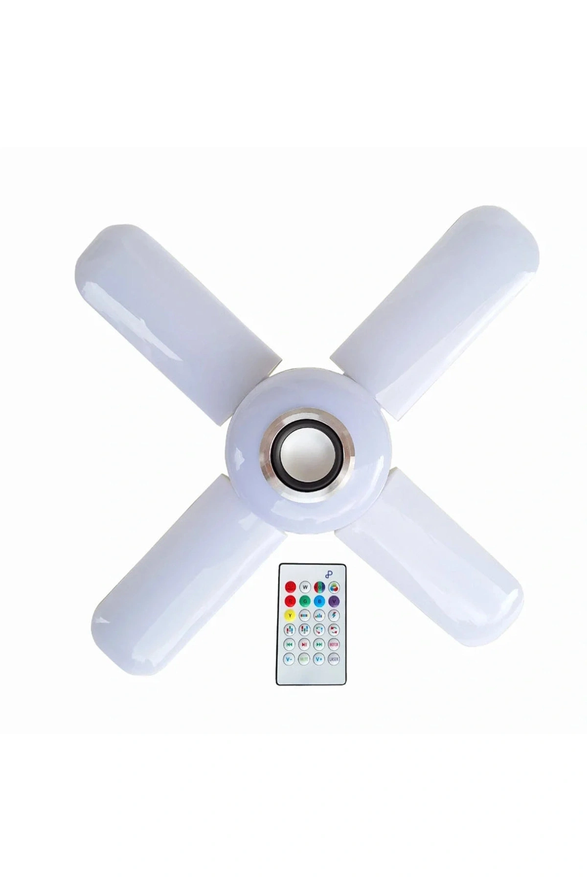 Pervane Bluetooth Hoparlör RGB Kumandalı Led Ampul 50 Watt Lamba 4 Kanatlı E27 Duya Takılan Kumandalı Katlanabilir Led Müzik Lamba Işığı Avize Bluetooth Hoparlör Öğe: Bluetooth hoparlör 4 katlanabilir müzik LED lamba kollu Boyut: (D)110mm x (H)205mm Gövde rengi: beyaz Açık renk: RGB + beyaz renk Çalışma gerilimi: AC85-265V/50-60Hz Güç: 50W Baz: E27 Kablosuz versiyonu: Bluetooth 5.0 Uzaktan: 24 anahtar IR uzaktan LED çip: SMD2835 Özellikler 1. Bluetooth hoparlör ile renkli ışık Bluetooth kablosuz bağlantı ile akıllı telefonunuzdan müzik çalabilen 4 daralan ampul ışık kafa ile tasarlanmış LED LED ışık.; Işıklar müzik tonuna göre hareket edebilir.; 2. Süper parlak ışık Kolayca kapatın/açın, renk değiştirme, müzik çalma.; 4000lm yüksek lümen çıkışı ile toplam güç 50W, 6500K beyaz ışık.; Size en iyi iç mekan aydınlatması deneyimi, % 85% LED enerji tasarrufu ve çevre dostu sağlar.; 3. 4 aydınlatma modu İstediğiniz her an için doğru ortamı ayarlamak için RGB/Flash/EQ/Fade arasından seçim yapın.; Romantik bir atmosfer yaratmak için en sevdiğiniz rengi seçin veya yumuşak beyaz ışıkla genel aydınlatma için kullanın, karanlık alanlar, hayalet veya parlama yok.; 4. Yüksek kalite ve kolay kurulum E27 standart taban ile donatılmış led lamba.; Kurulum bir ampul takmak kadar kolaydır.; 5. Geniş uygulama Geleneksel floresan armatürlerin mükemmel değiştirilmesi.; Kullanım alanları genel; çocuk odası, garaj, depo, bodrum, parti, ofis, depolama odası, süpermarket, Bar dekorasyon, atölye, ekran alanı, stüdyo vb.